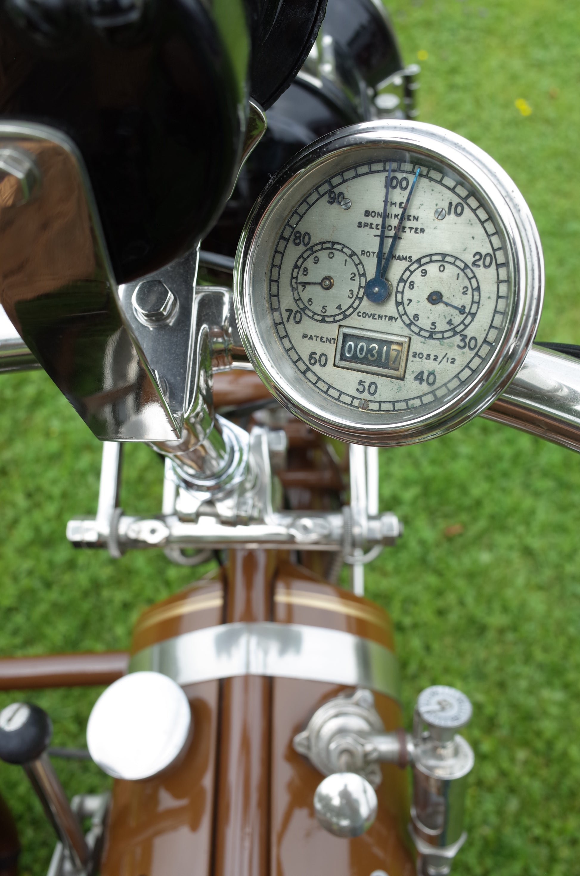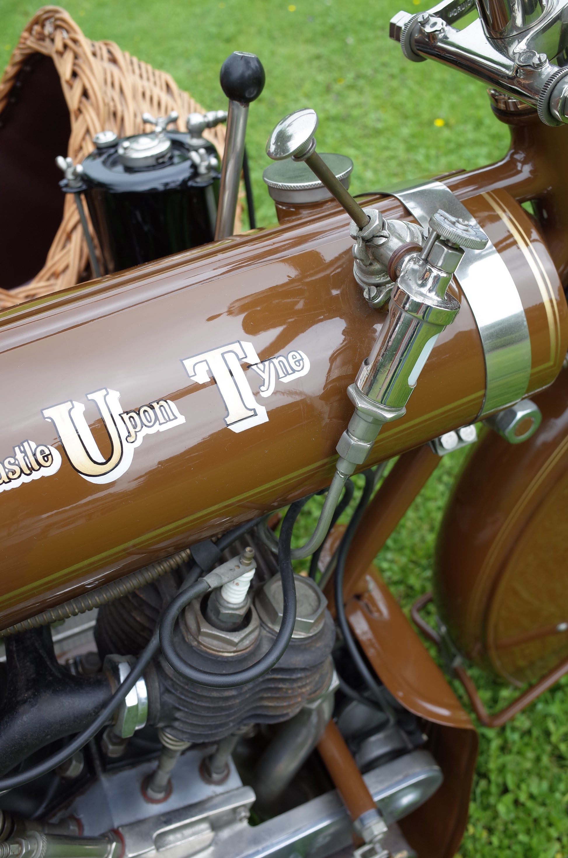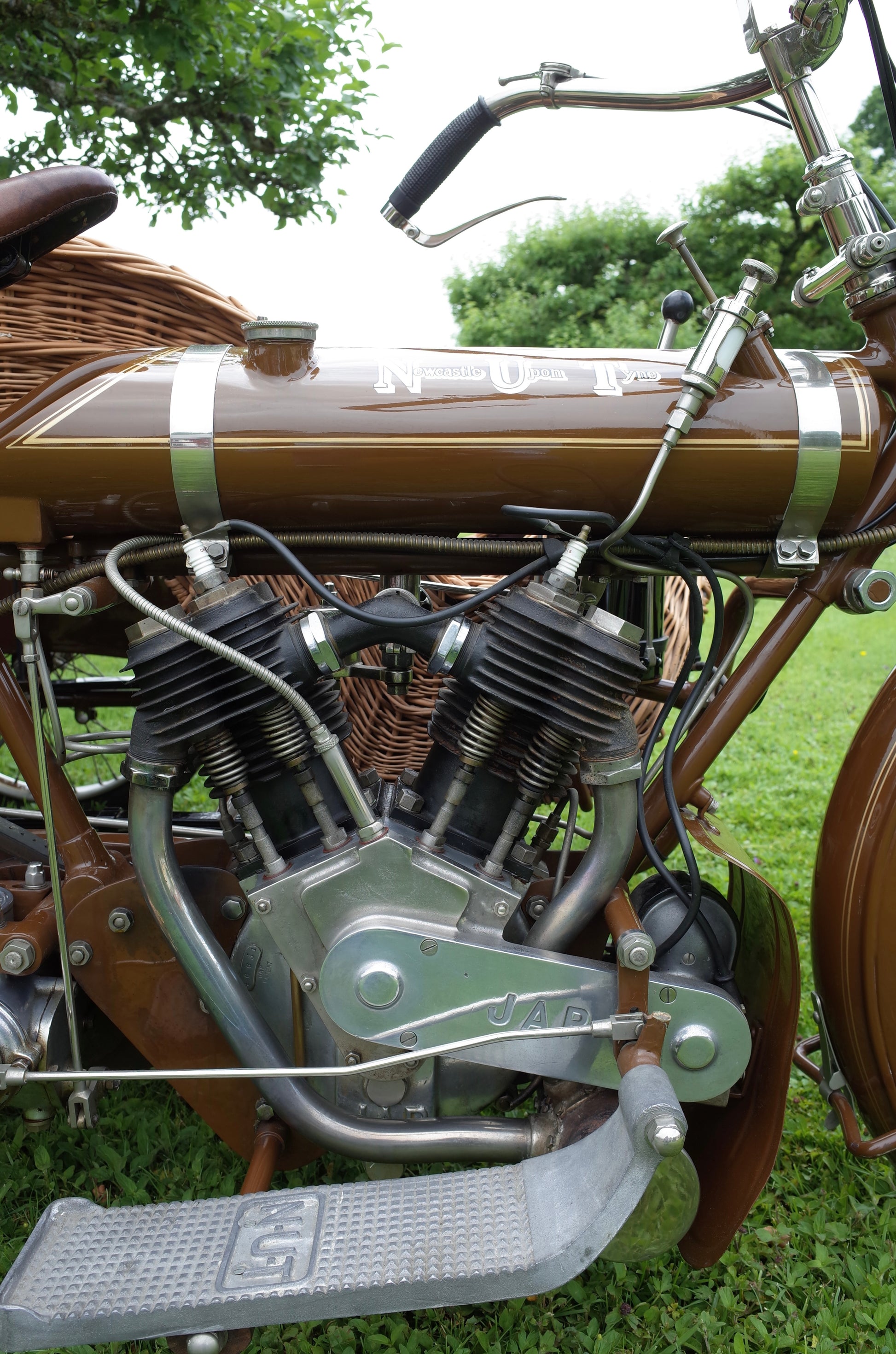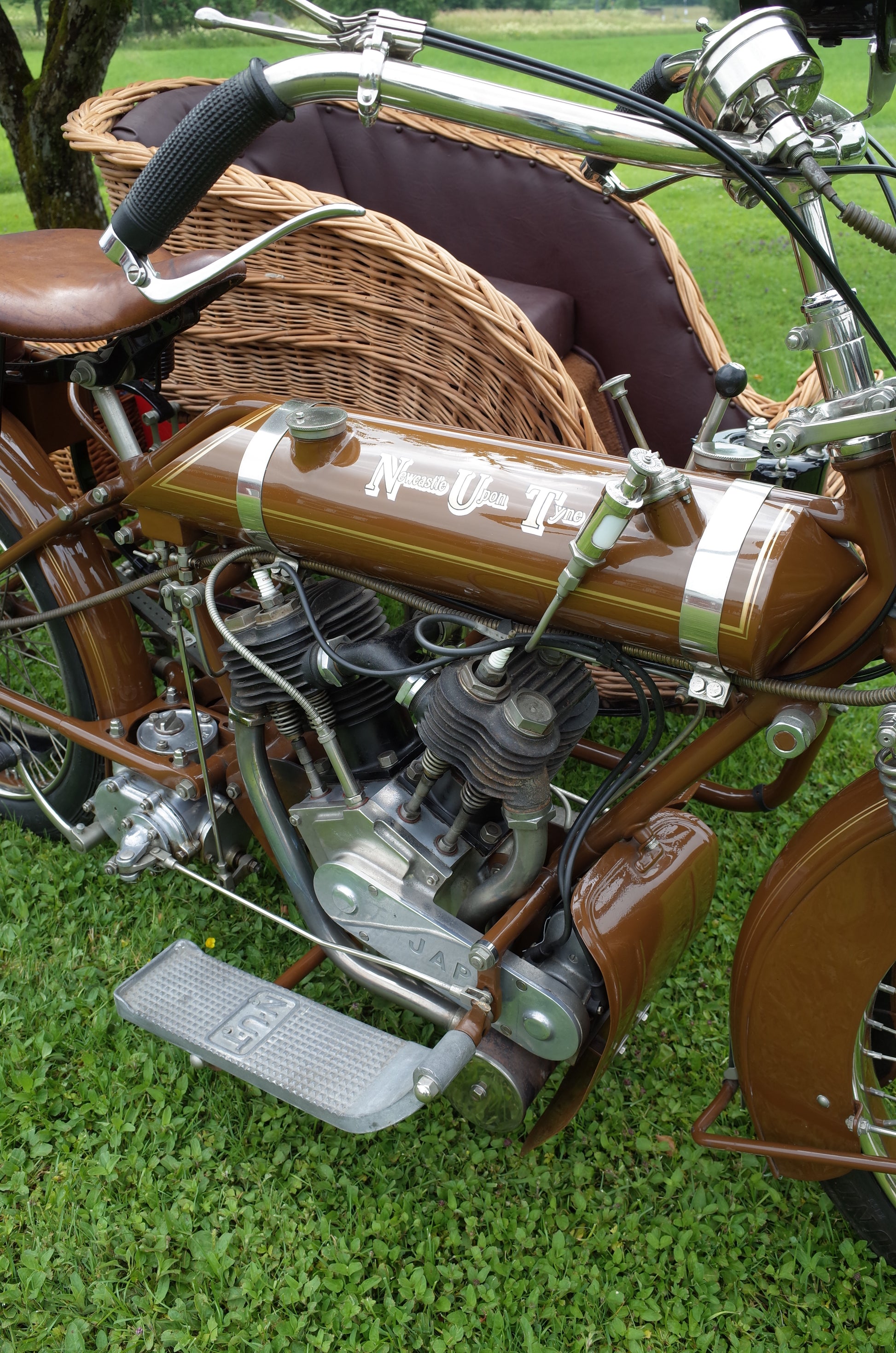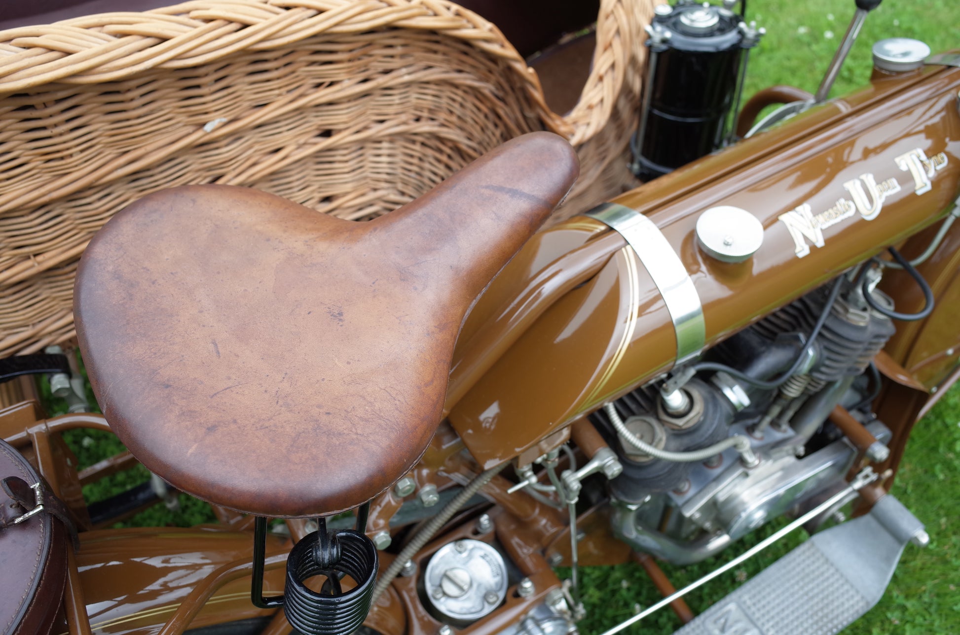 This magnificent 1914 NUT 775cc V-Twin was restored a number of years ago in the UK, after which it was sold to Sweden. It has been with the same collector family since 1993, and always well cared for. The NUT was only used for summer outings and gatherings, and remains in near mint condition. Paint and plate is in perfect condition and the NUT motorcycle would not be out of place exhibited in a museum or at a concours show.