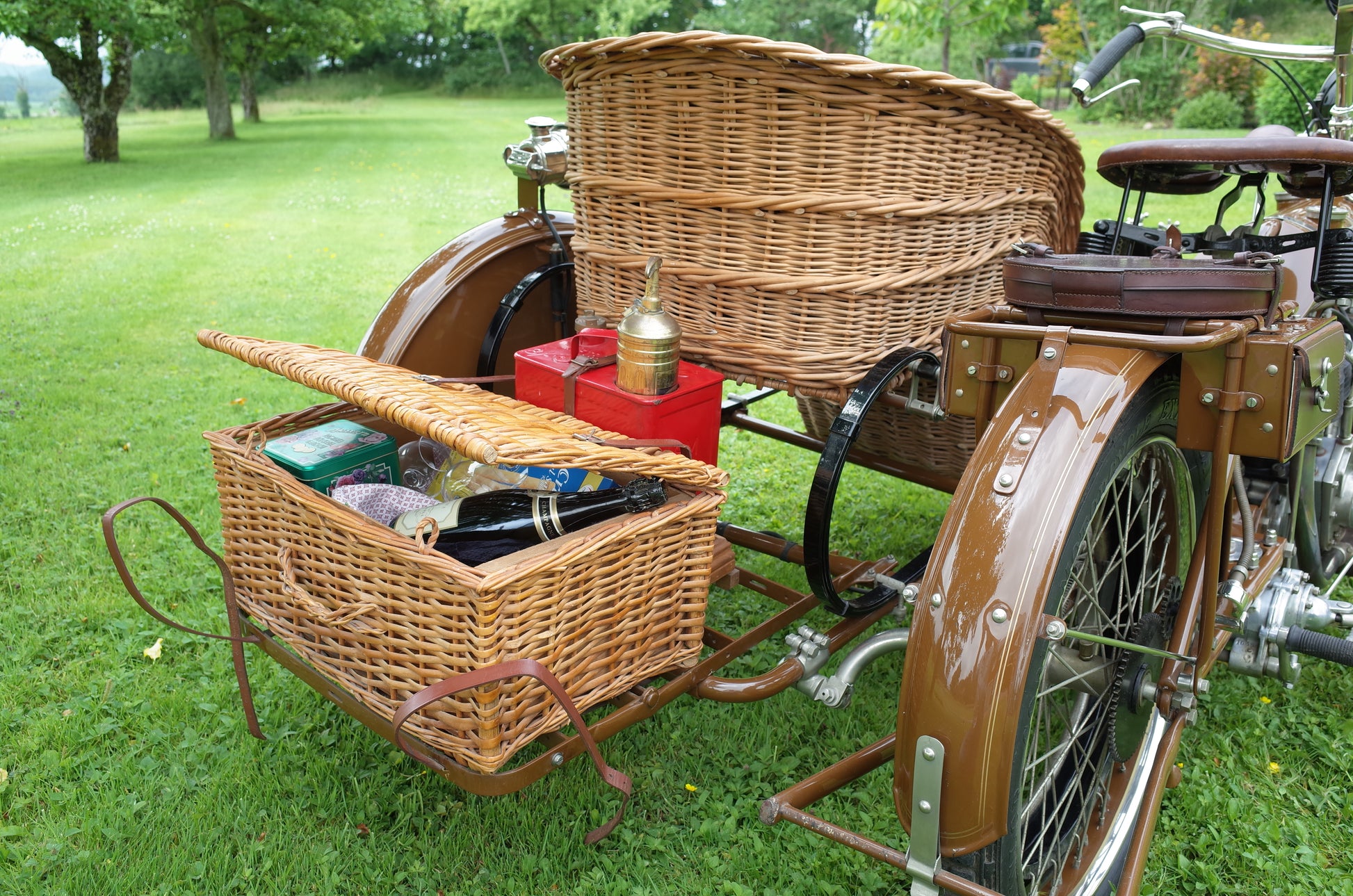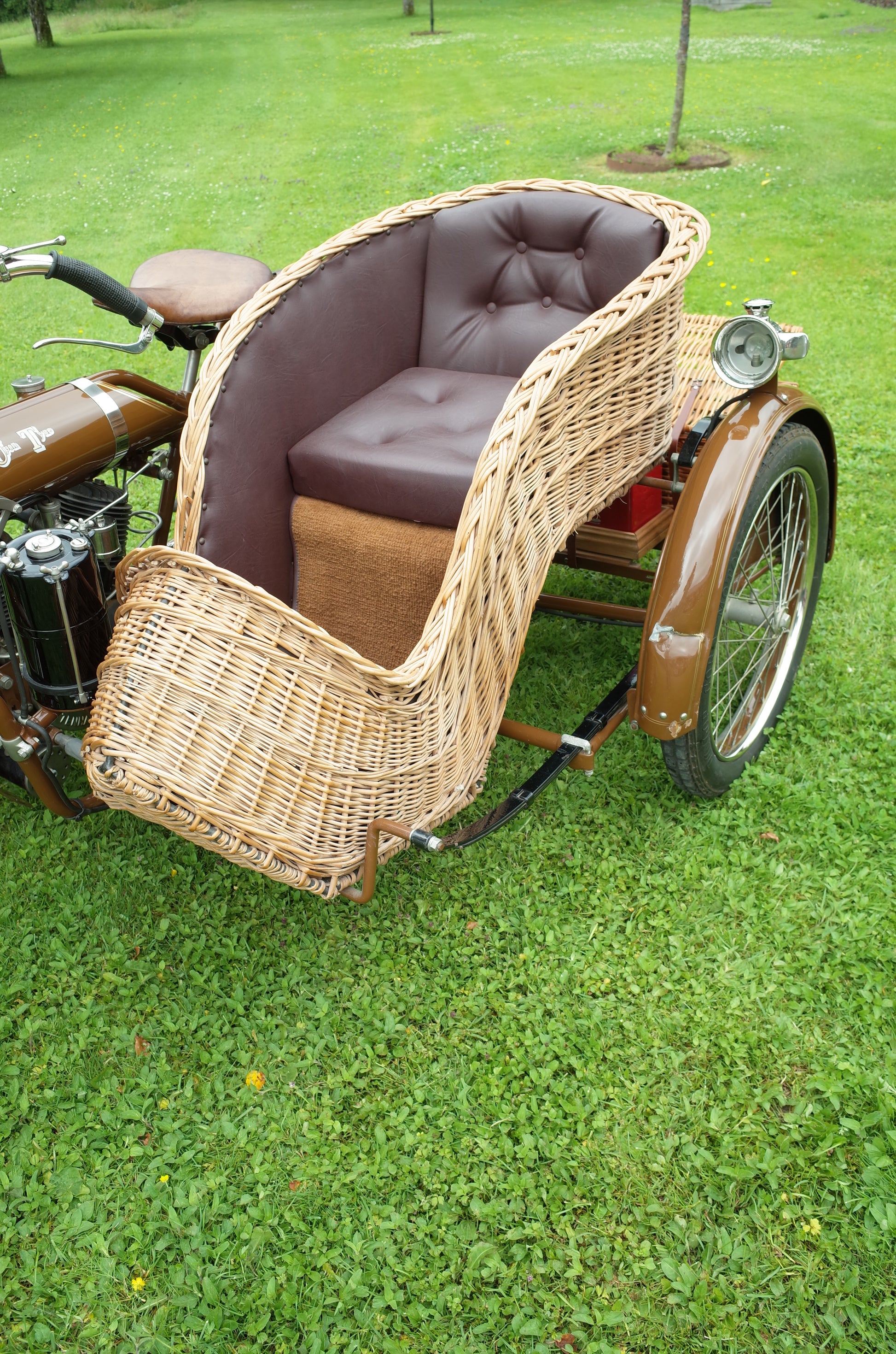 The wicker picnic chair is believed to be original to the motorcycle but can be sold separately upon negotiation.