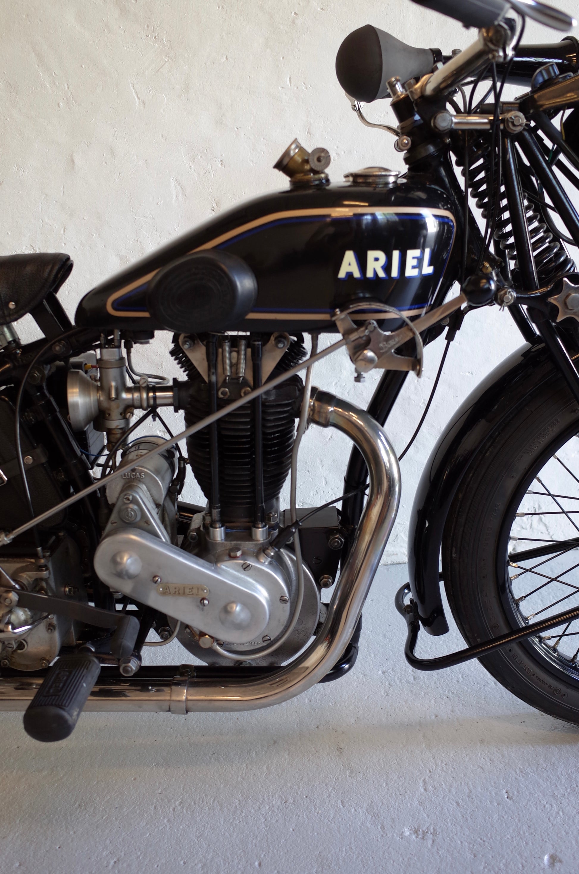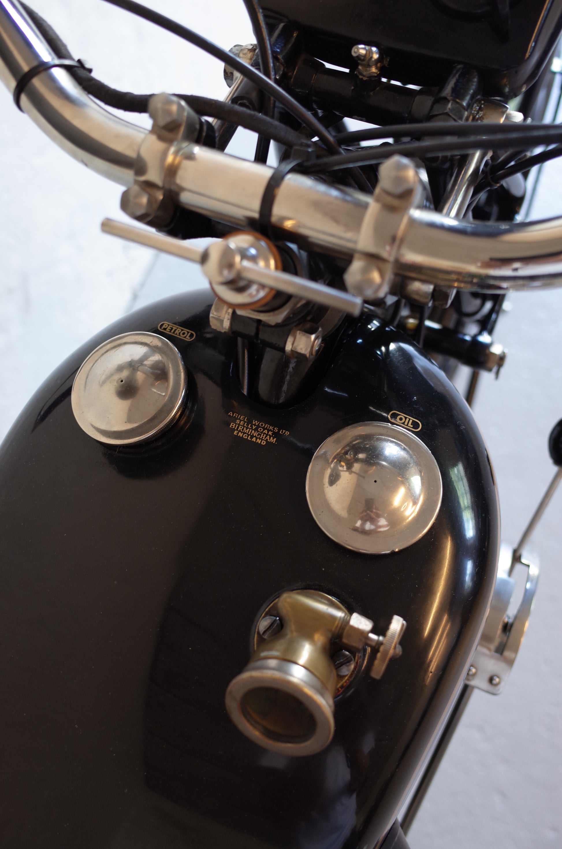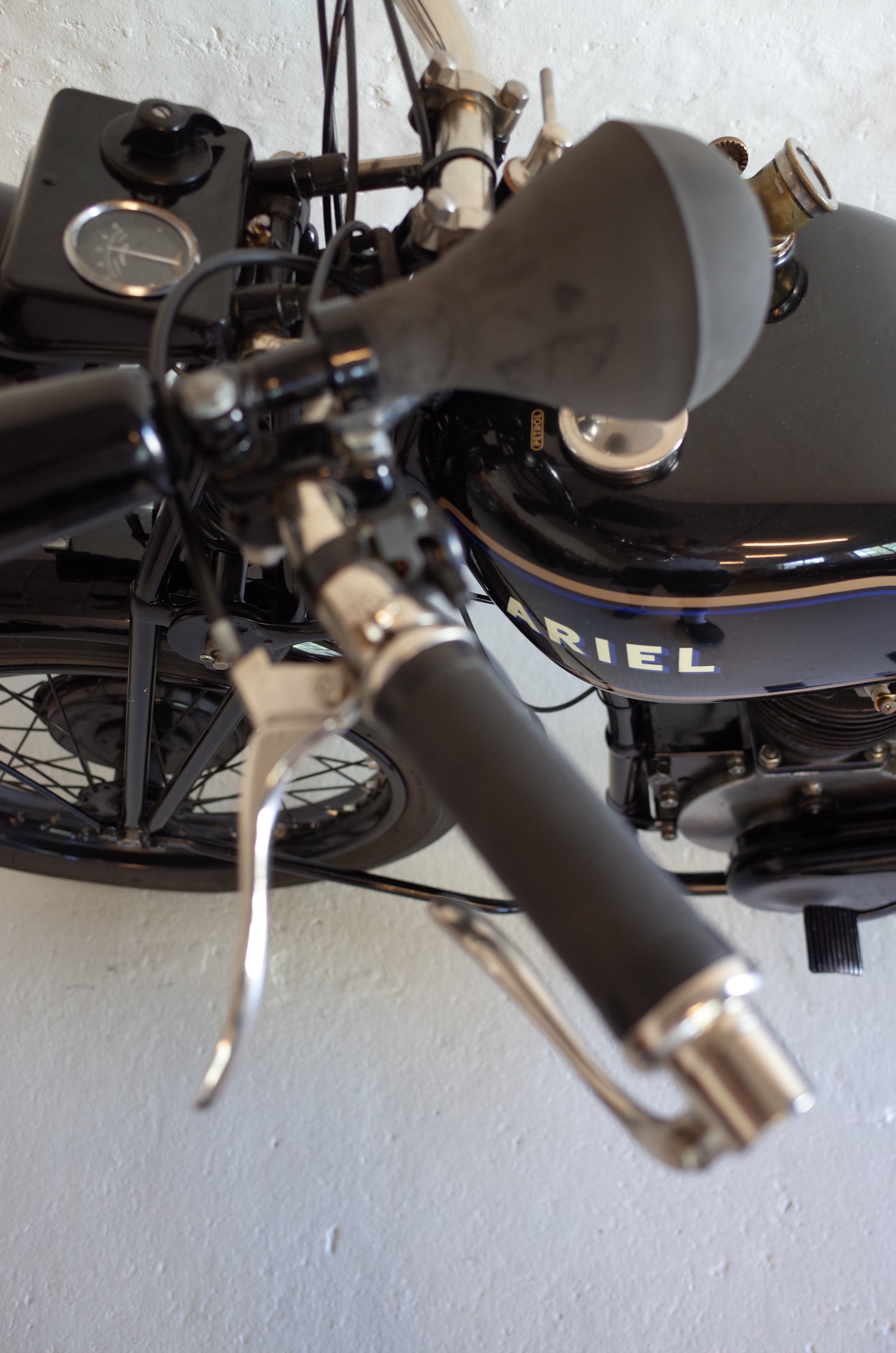 1927 Ariel Model C in excellent restored condition. Beautiful detailing throughout. Amal brass carb, original Lucas headlight, original Terry seat. . This 1927 Ariel was delivered as a Model A but has since been rebuild to Model C specification using the original crankcase and frame (crankcase and frame are a matching set as per the factory records that comes with the bike).