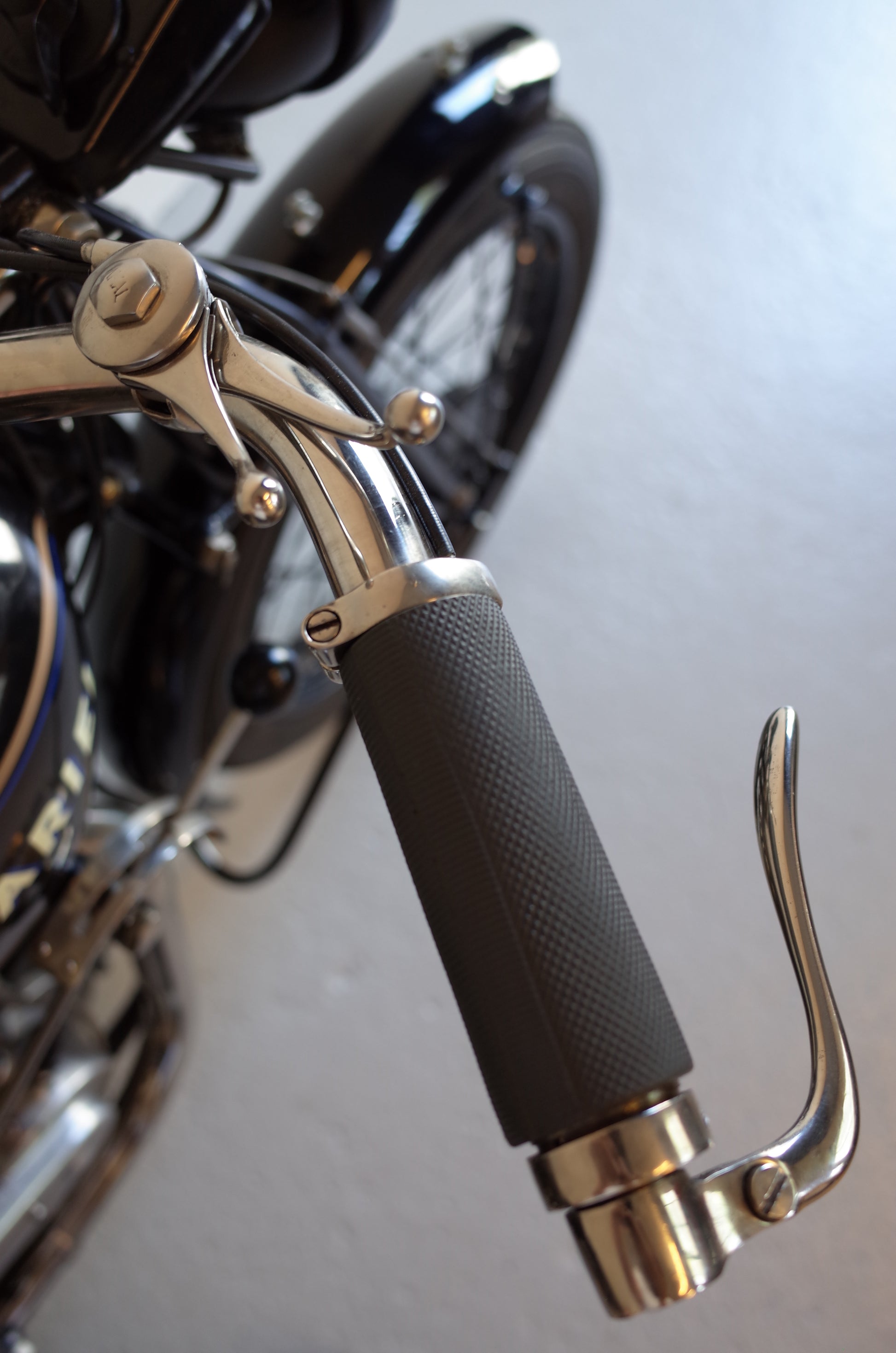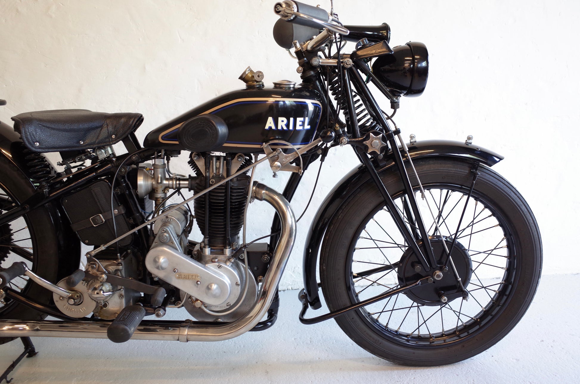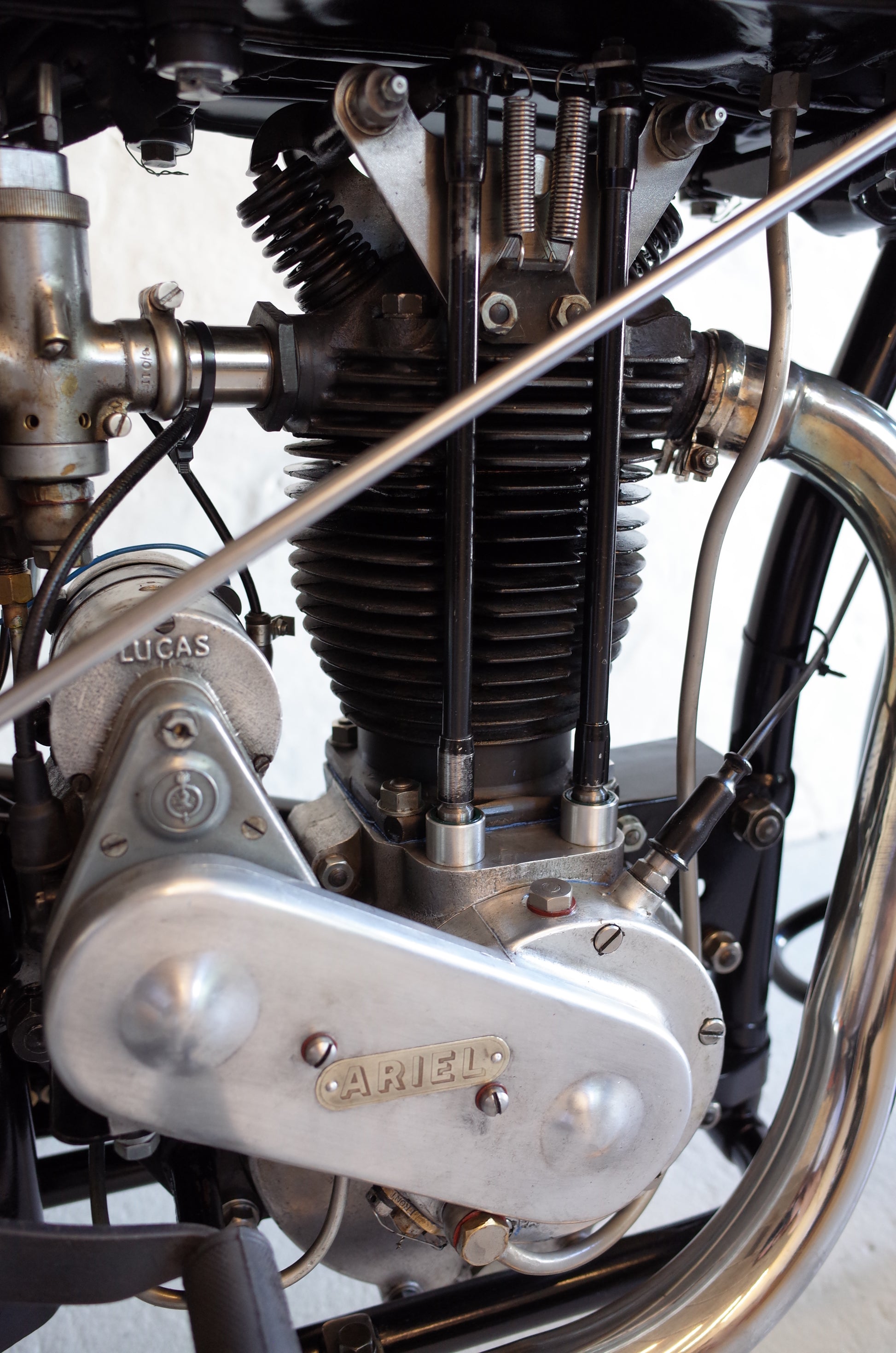 1927 Ariel Model C in excellent restored condition. Beautiful detailing throughout. Amal brass carb, original Lucas headlight, original Terry seat. . This 1927 Ariel was delivered as a Model A but has since been rebuild to Model C specification using the original crankcase and frame (crankcase and frame are a matching set as per the factory records that comes with the bike).