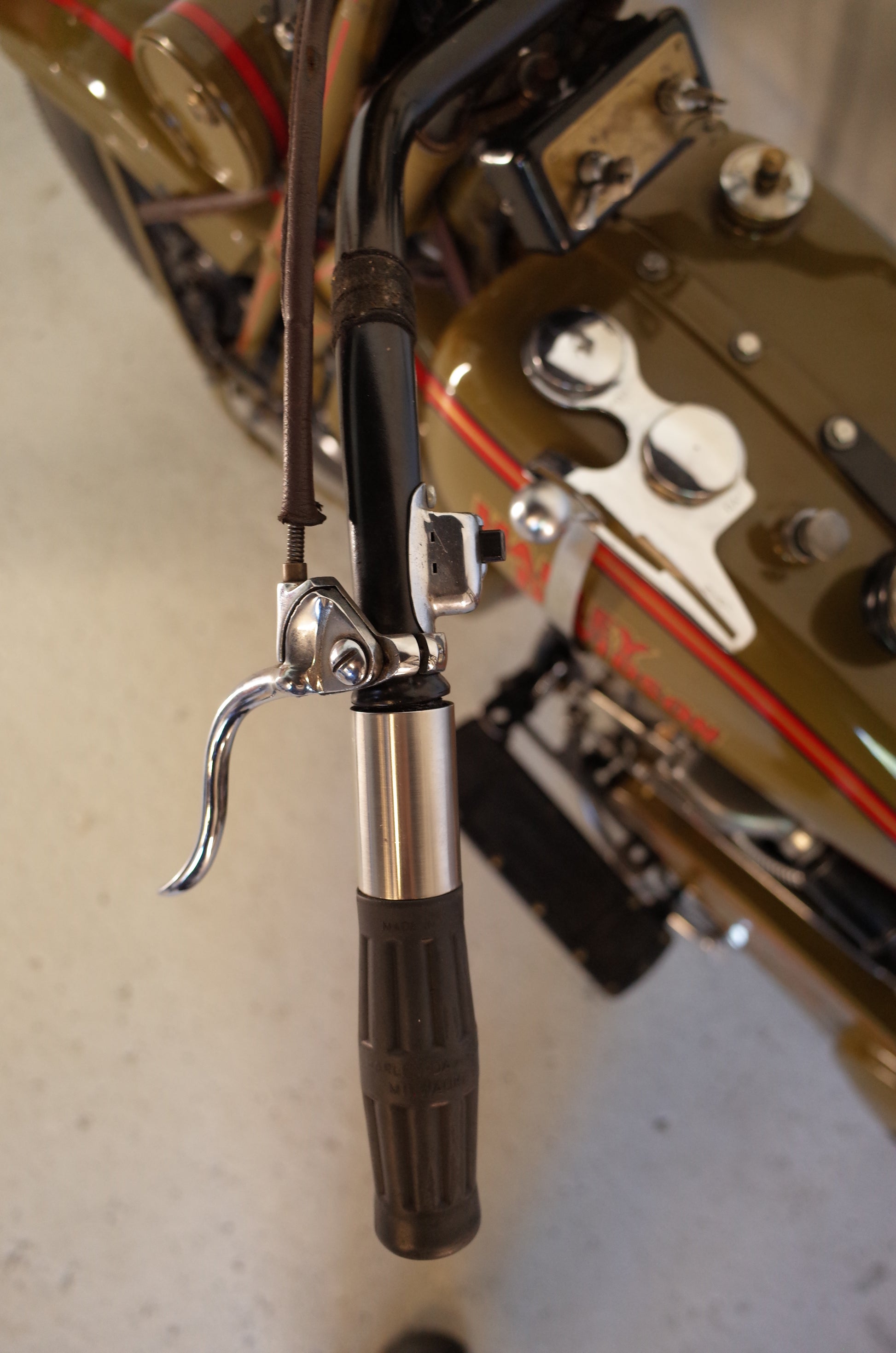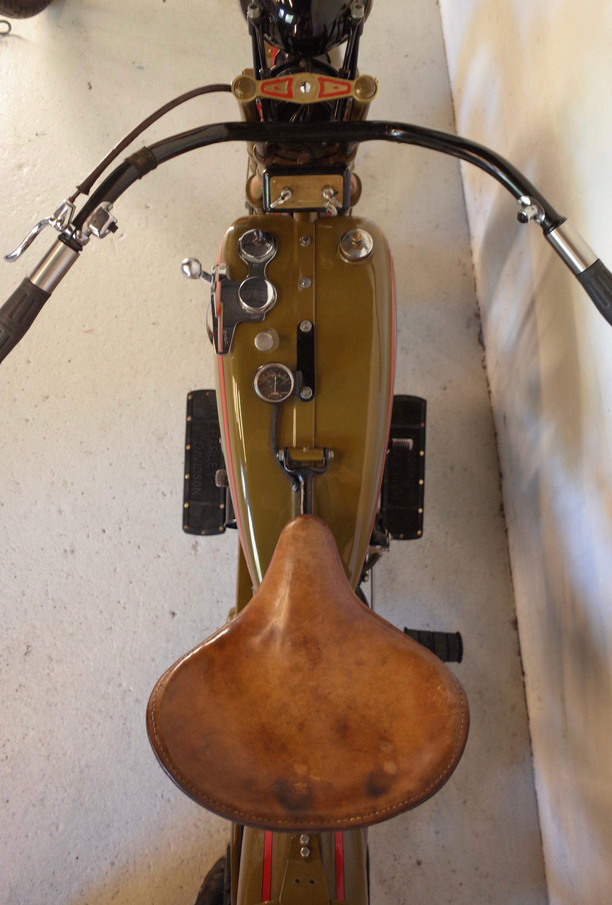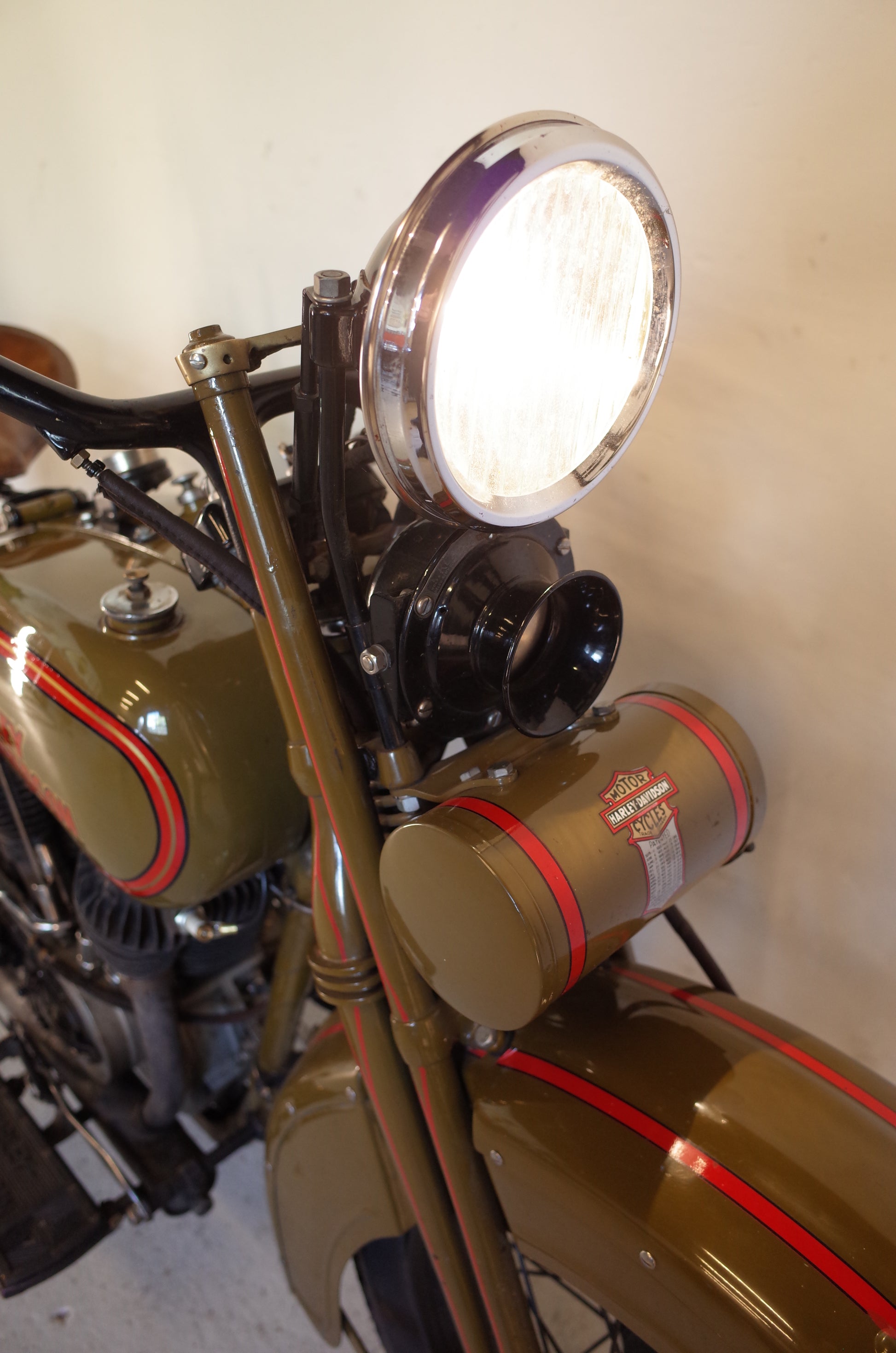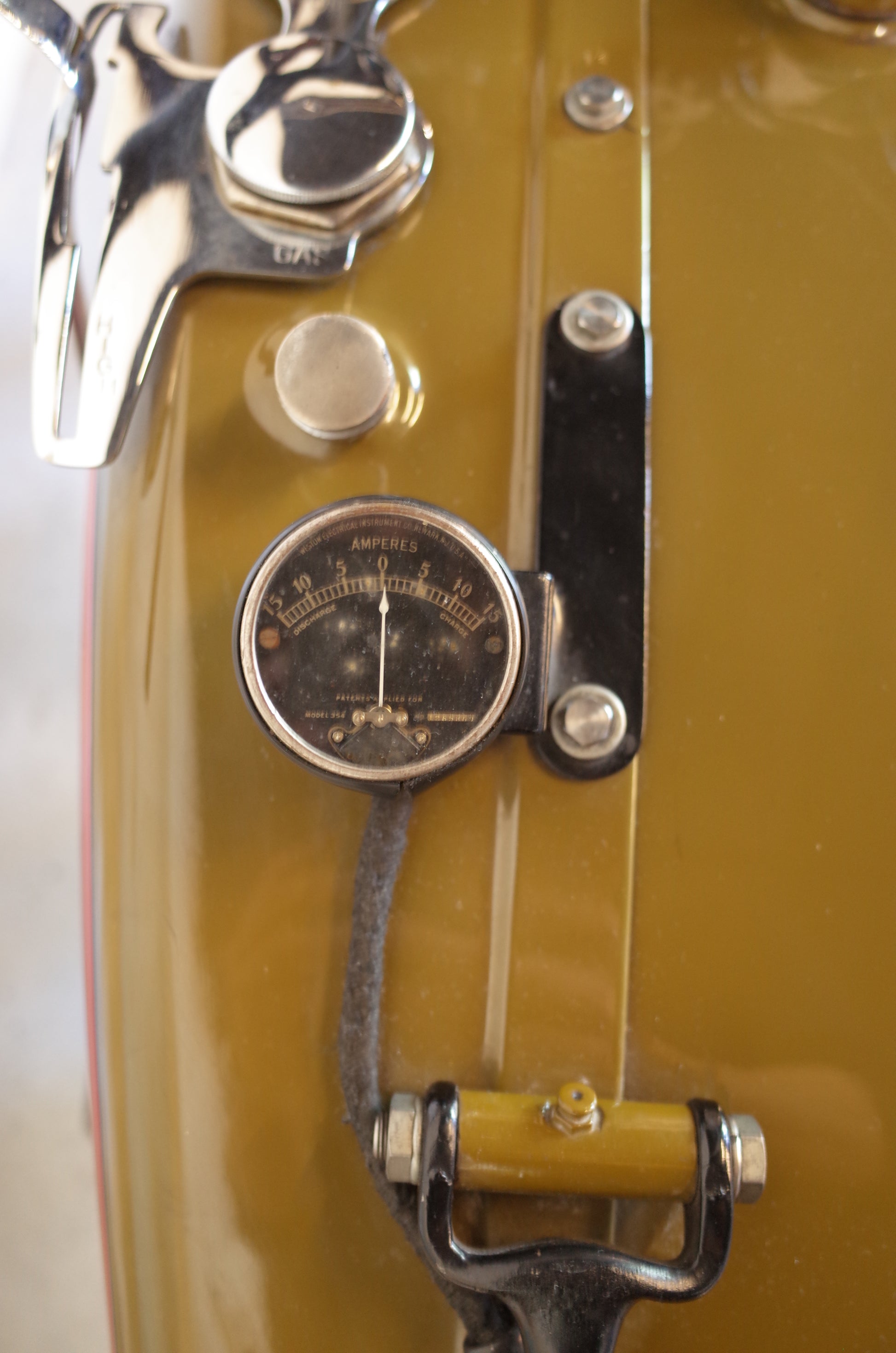 The front mudguard is a later, quality replica in steel. Lights are working. Klaxon horn is working. Ammeter working.