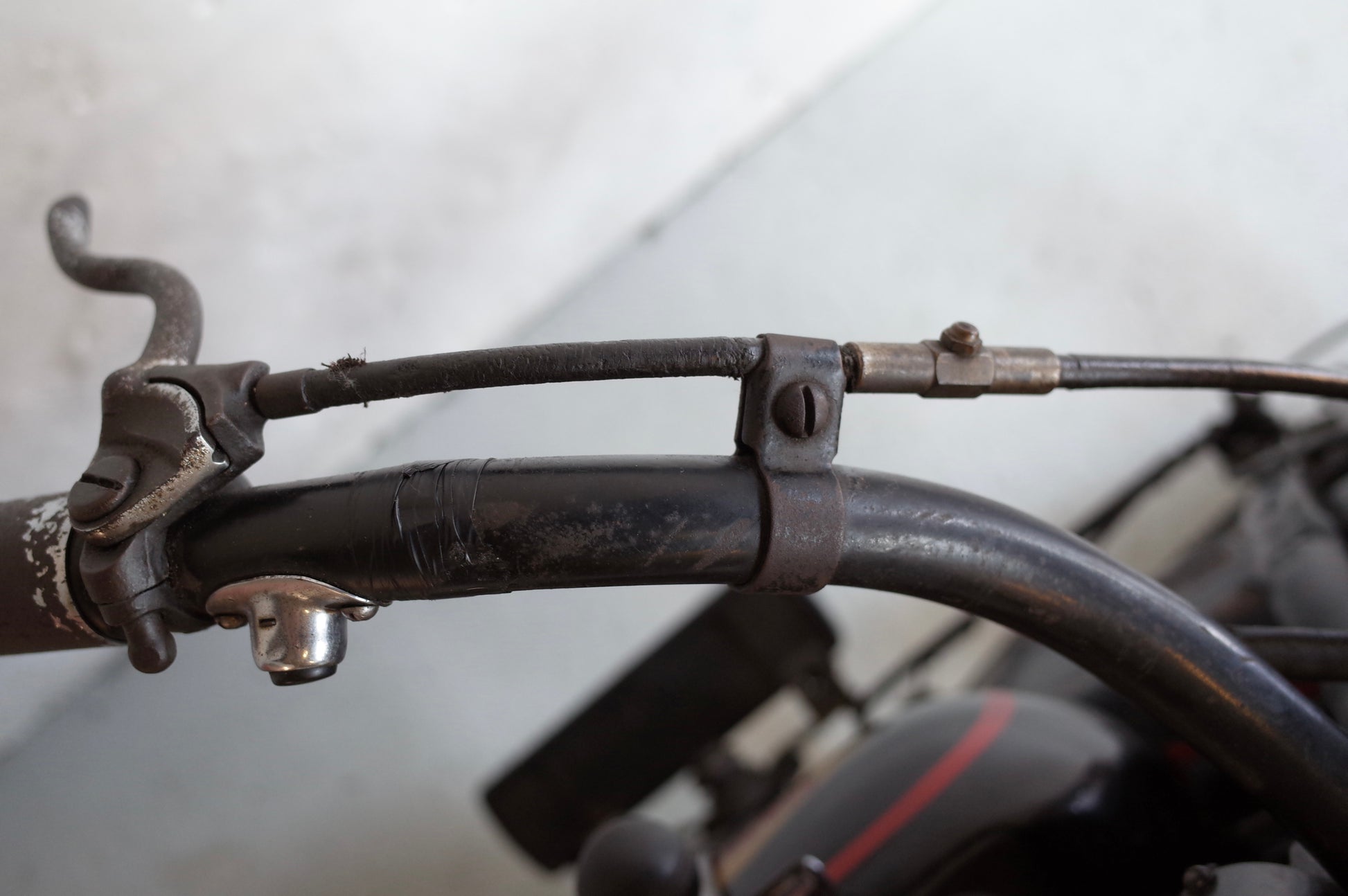 The HD is easy to start and will tick over at remarkably low revs once the engine is warmed up. The gears select easily, it will go through all 3 gears with the rear wheel spinning on the stand. There is a fabulous exhaust note from the double barrel silencer.