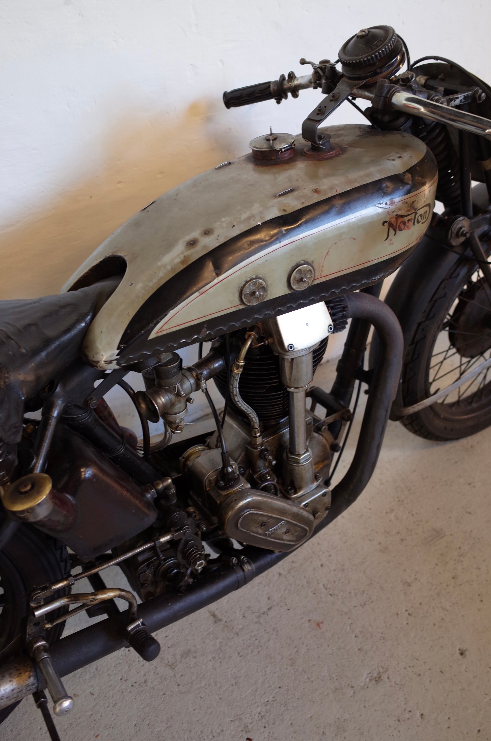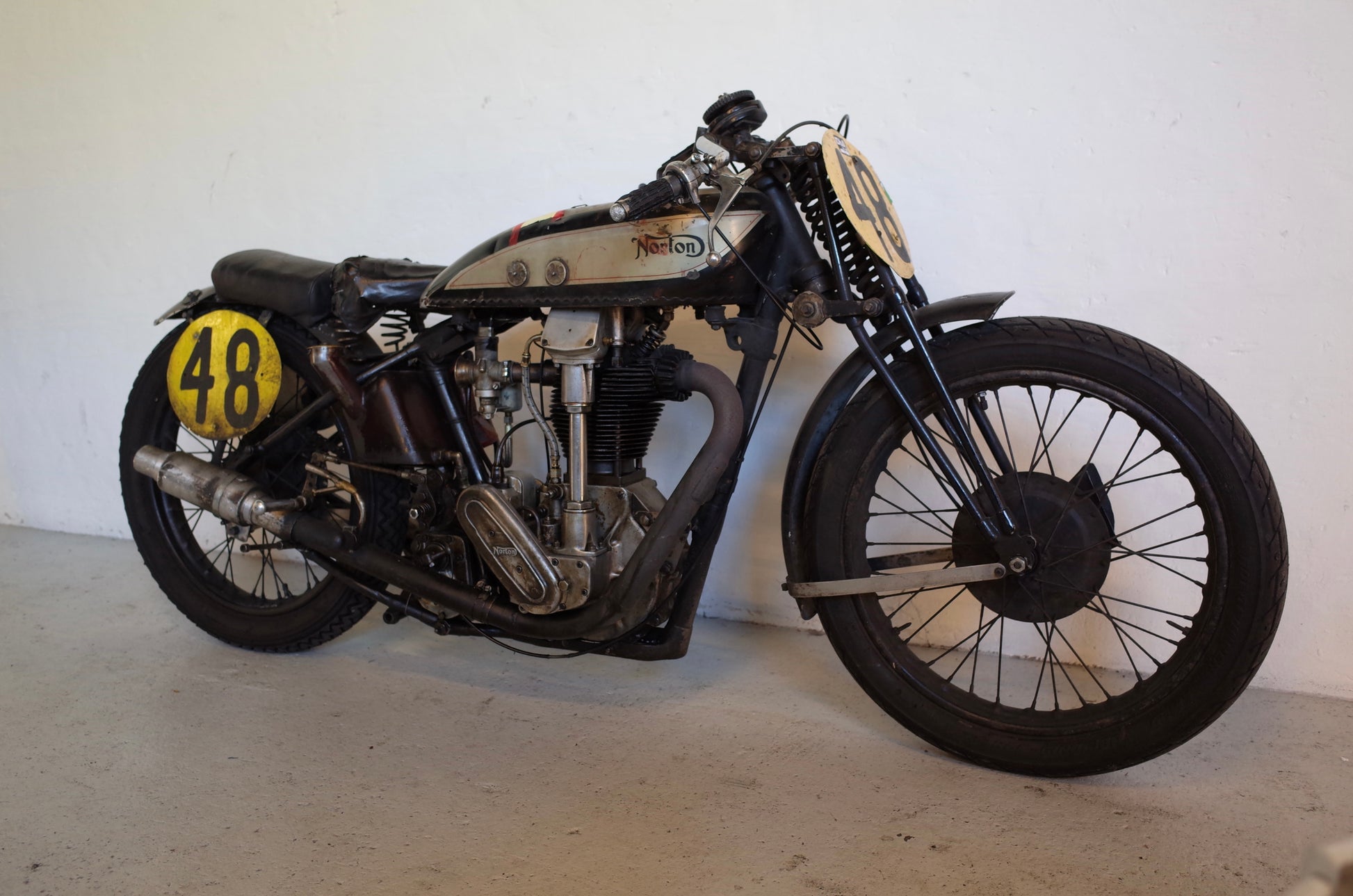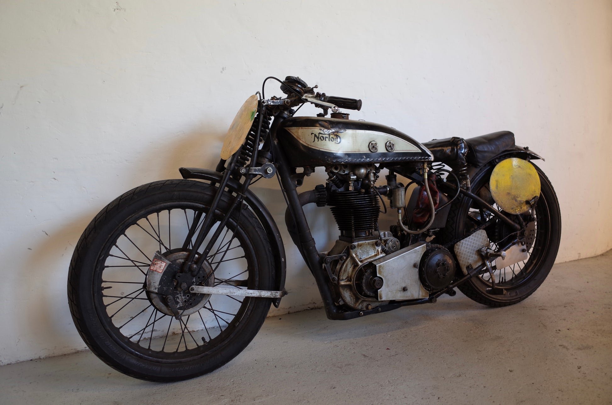 Early 1930s Norton camshaft in race ready condition. This Norton camshaft racer was build in the 1960s and has been raced sporadically on and off since. The Norton camshaft racer consists of an early 1933 Norton International crankcase (the Norton International was first introduced in 1933 as the top of the range, with the CS1 becoming the “standard” camshaft on offer from Norton).