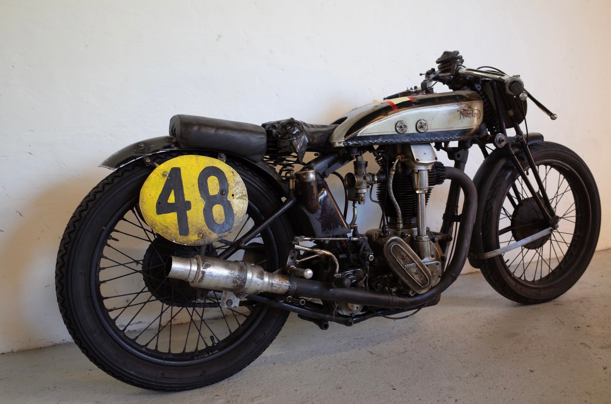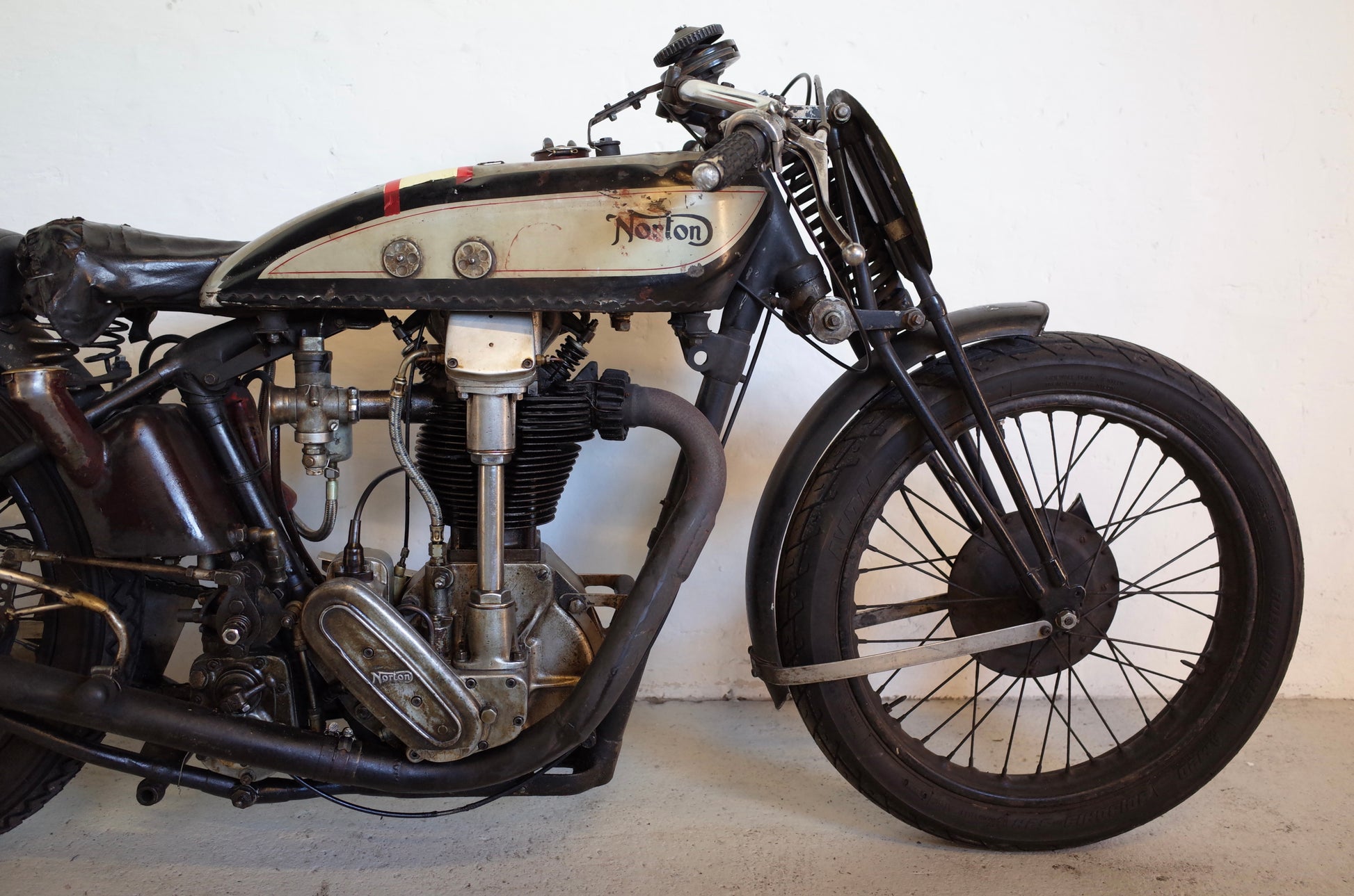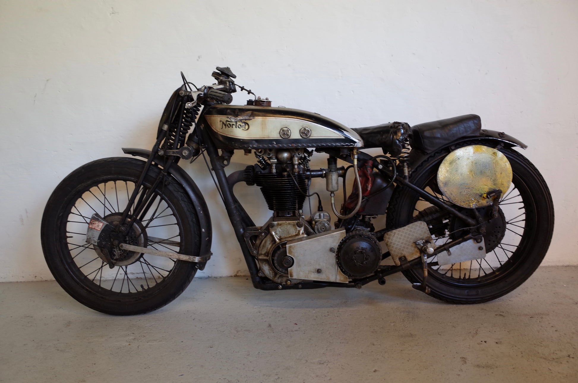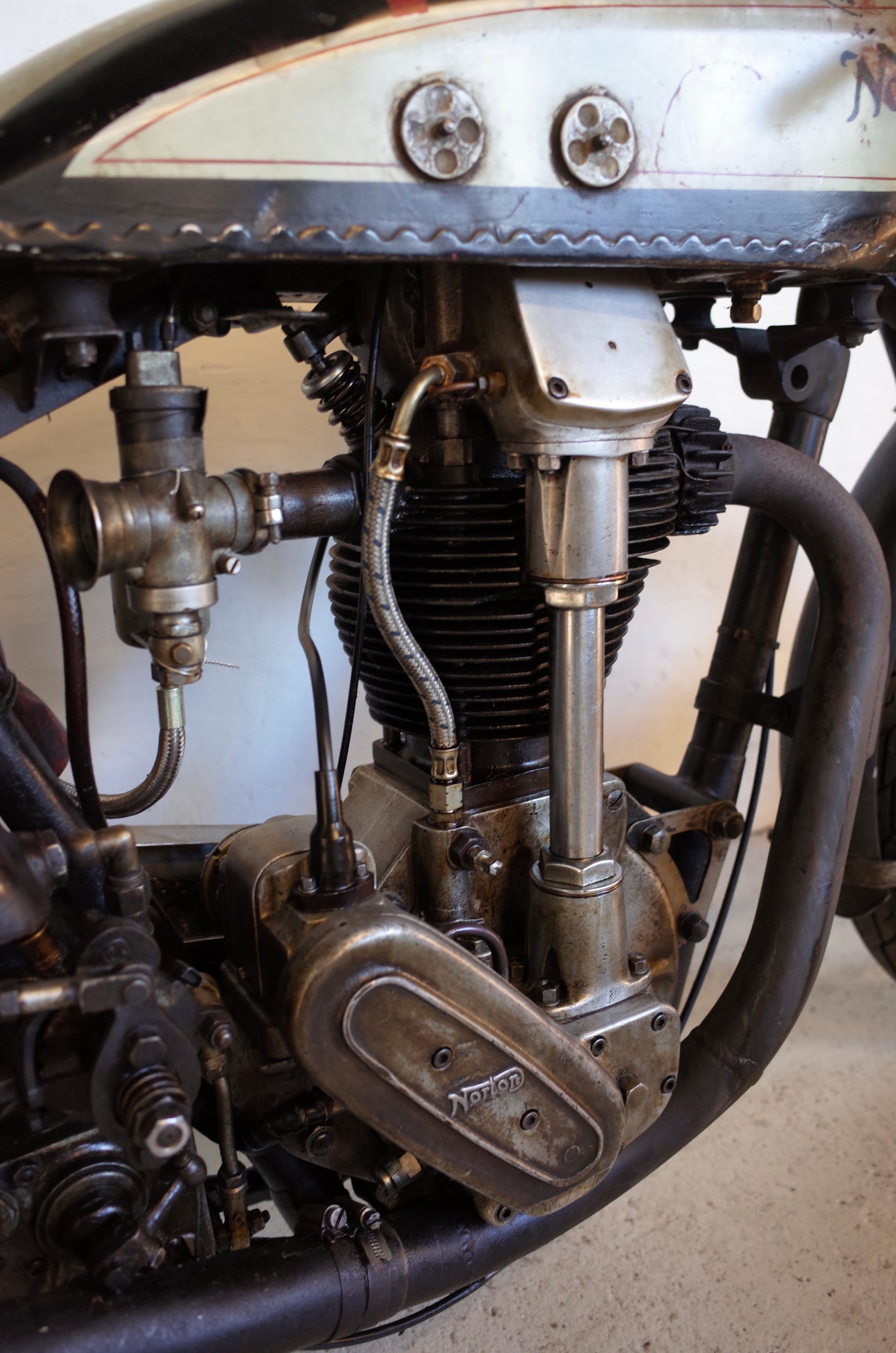 Early 1930s Norton camshaft in race ready condition. This Norton camshaft racer was build in the 1960s and has been raced sporadically on and off since. The Norton camshaft racer consists of an early 1933 Norton International crankcase (the Norton International was first introduced in 1933 as the top of the range, with the CS1 becoming the “standard” camshaft on offer from Norton).