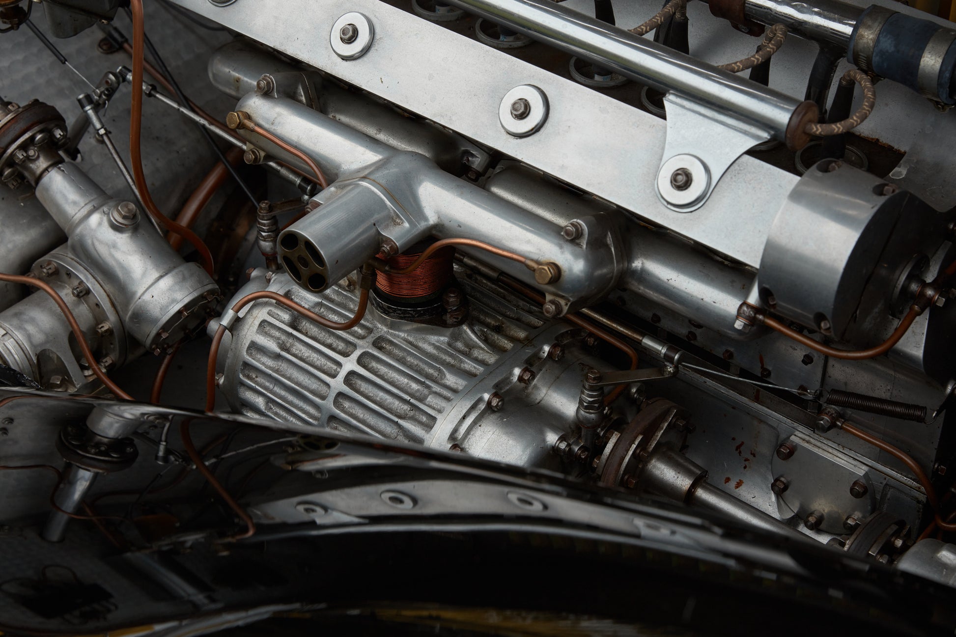 The complete running gear for the car came from Crosthwaite & Gardiner. This includes a full roller bearing crankshaft engine and Roots type supercharger made from original drawings.
