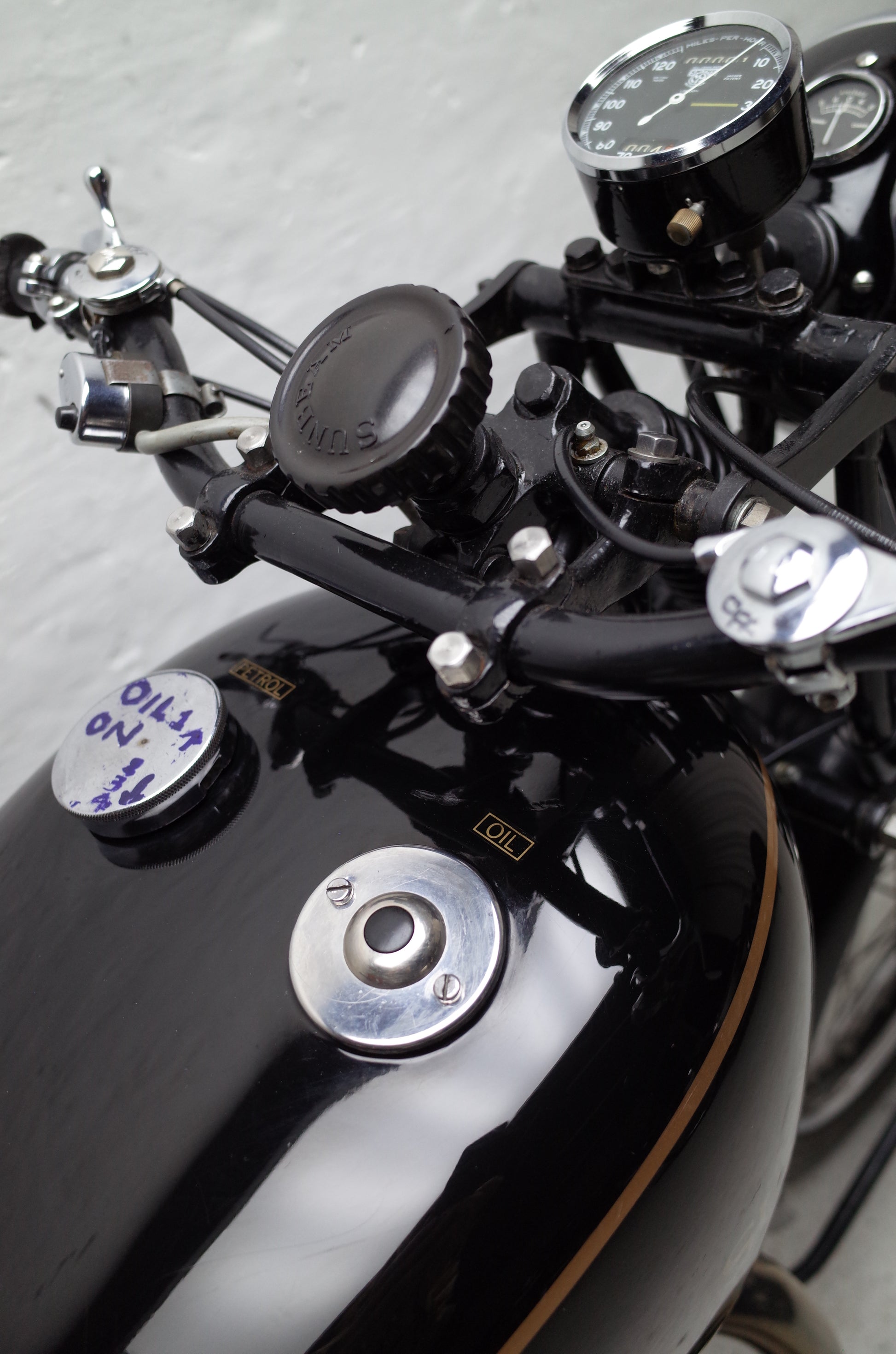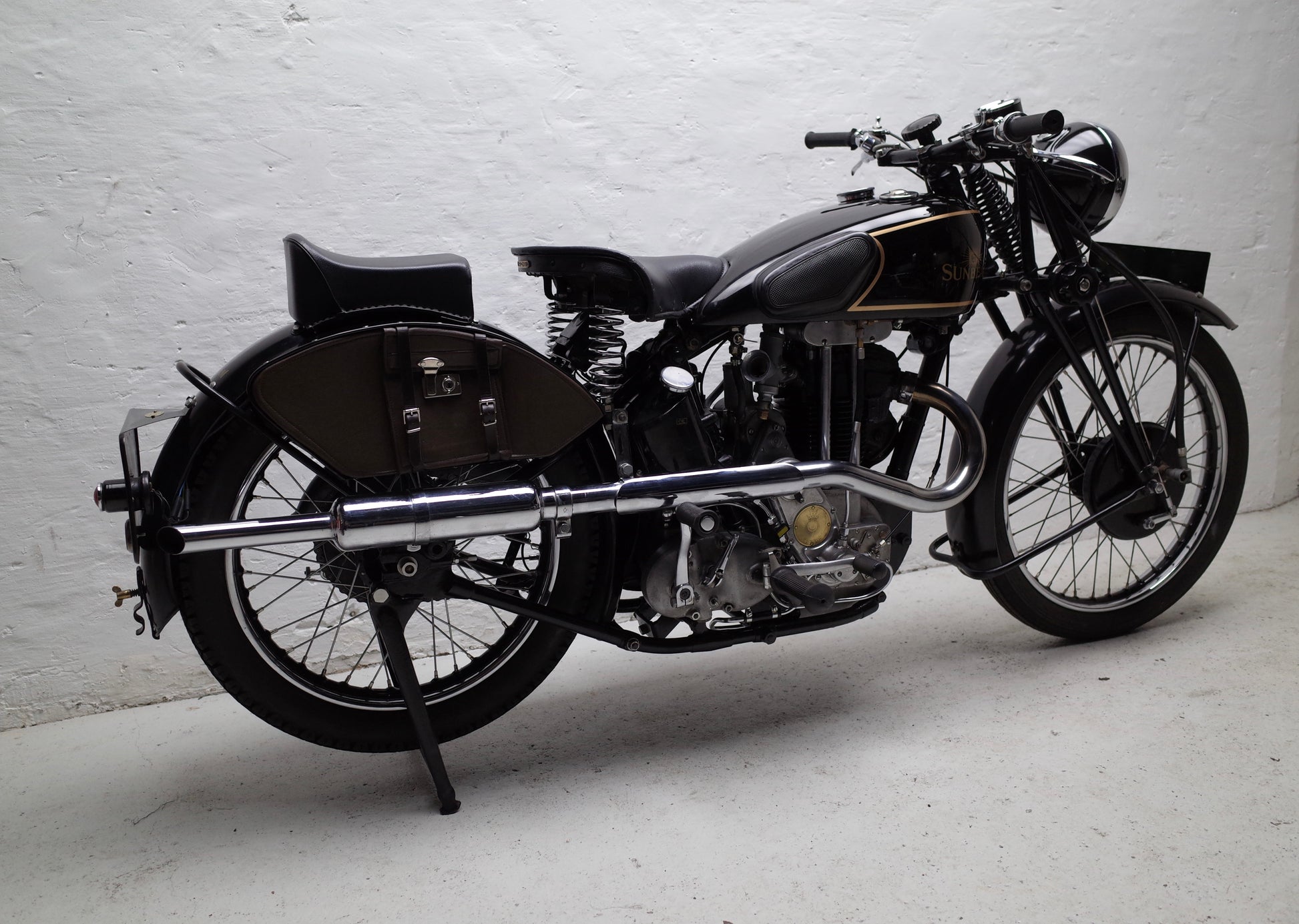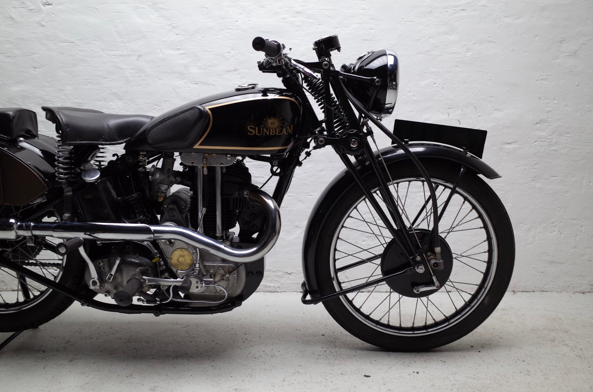 The Sunbeam M9 Sports was fully restored a few years ago to a very correct and original specification. The special pannier toolboxes were replicated from exact drawings. Unique downdraught cylinder head used on the Model 9 Sports model only. 4 speed Burman gearbox making it a pleasure to use in modern traffic.