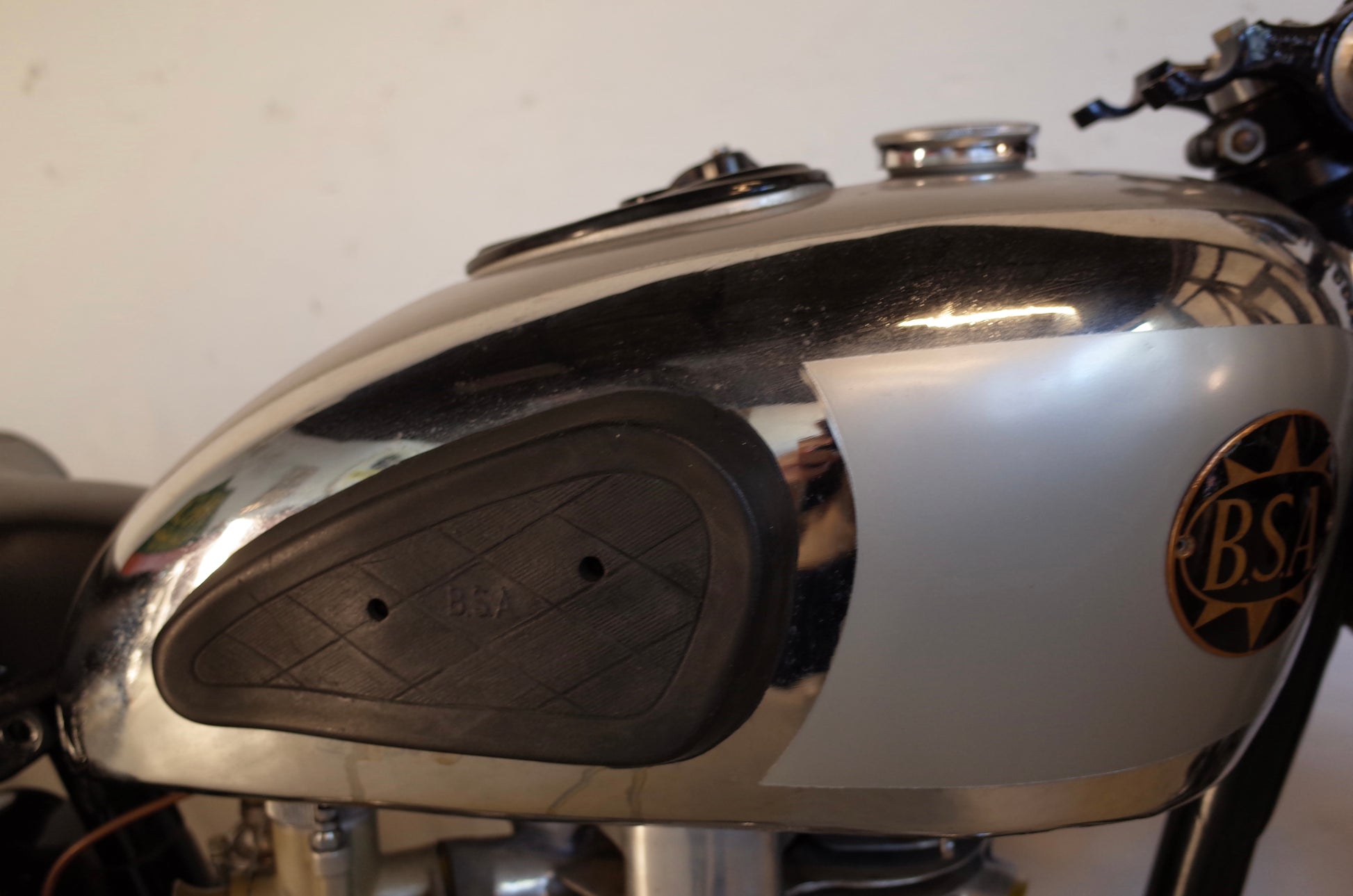 The chrome on the petrol tank is good however it is uneven in places and if you were going for a concours restoration, you would want to take the chrome off, polish and re-apply. One screw hole for the right hand side tank badge has been closed with filler and would need to be located. All other three screw holes are good.