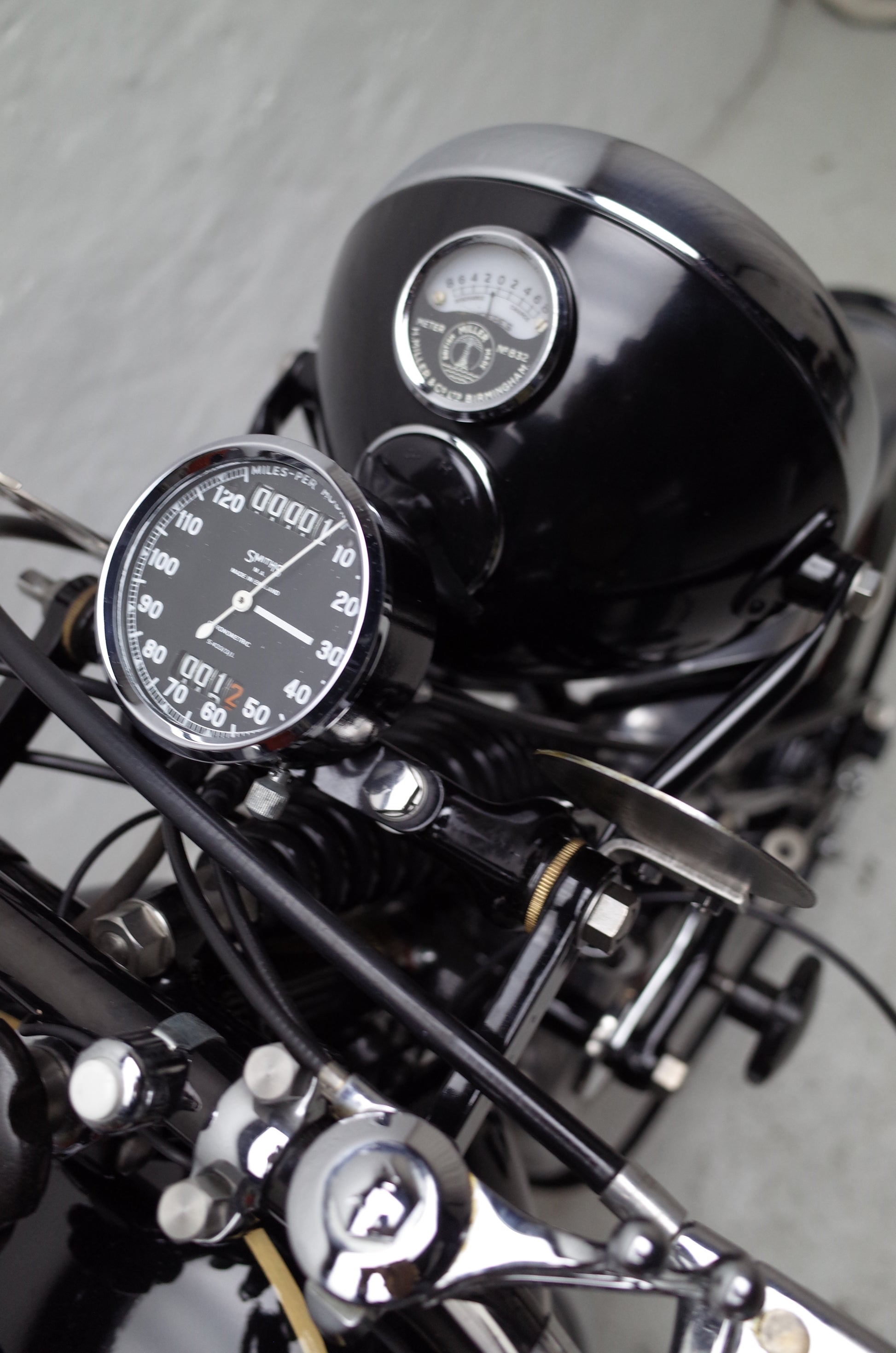 Very original and correct specification using original parts where possible: original Miller switch, original Miller rear light, original Miller headlight, Original Amal levers, Original, reconditioned Birmabright alloy mudguards, magneto cowl with original 3 digit stamping inside and the list goes on.