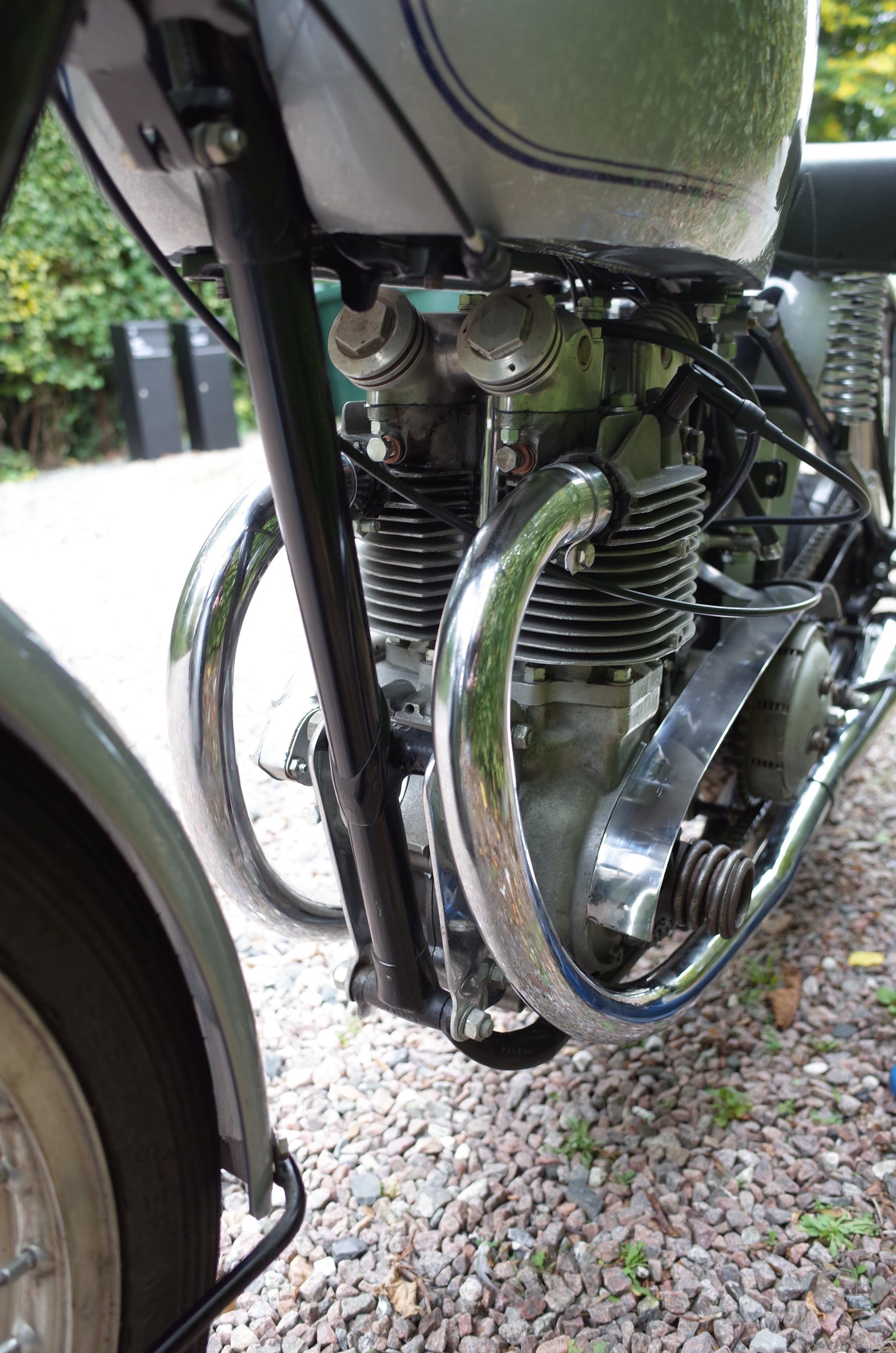 The frame and most other parts on the motorcycle are genuine Grand Prix items. The frame number is verified in a 1991 letter to the owner by then editor of The Classic Motorcycle, Phillip Tooth. The original letter comes with the bike. The VMCC in England have also confirmed the frame number in recent times.
