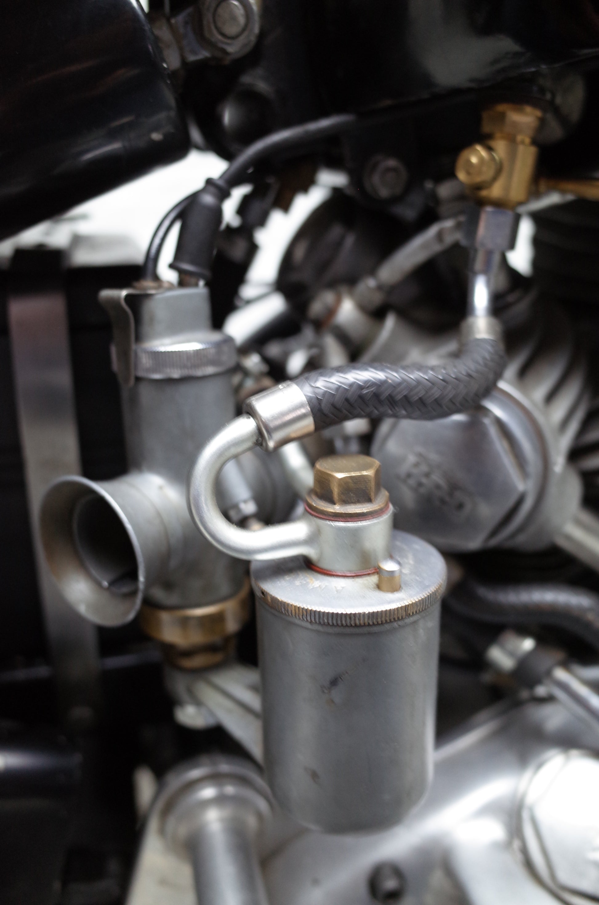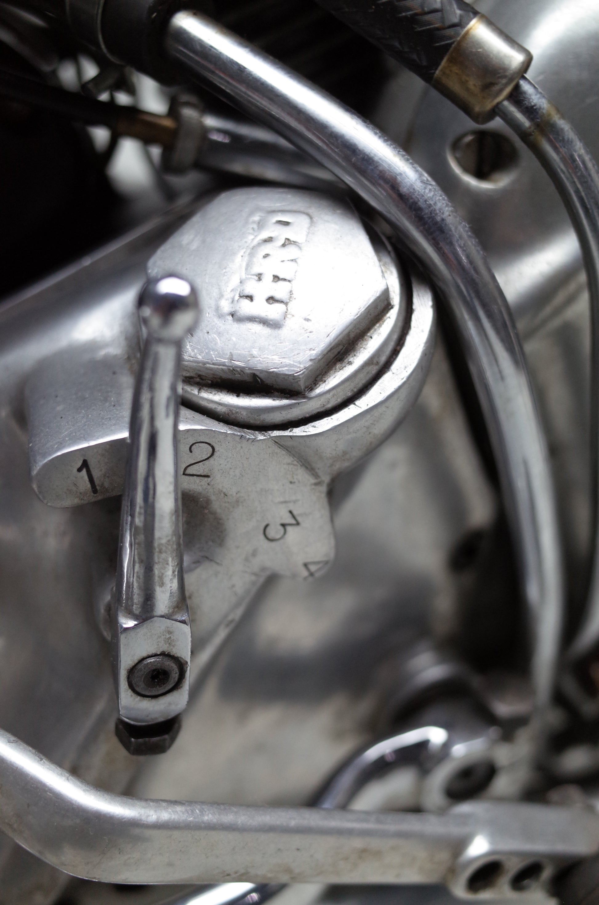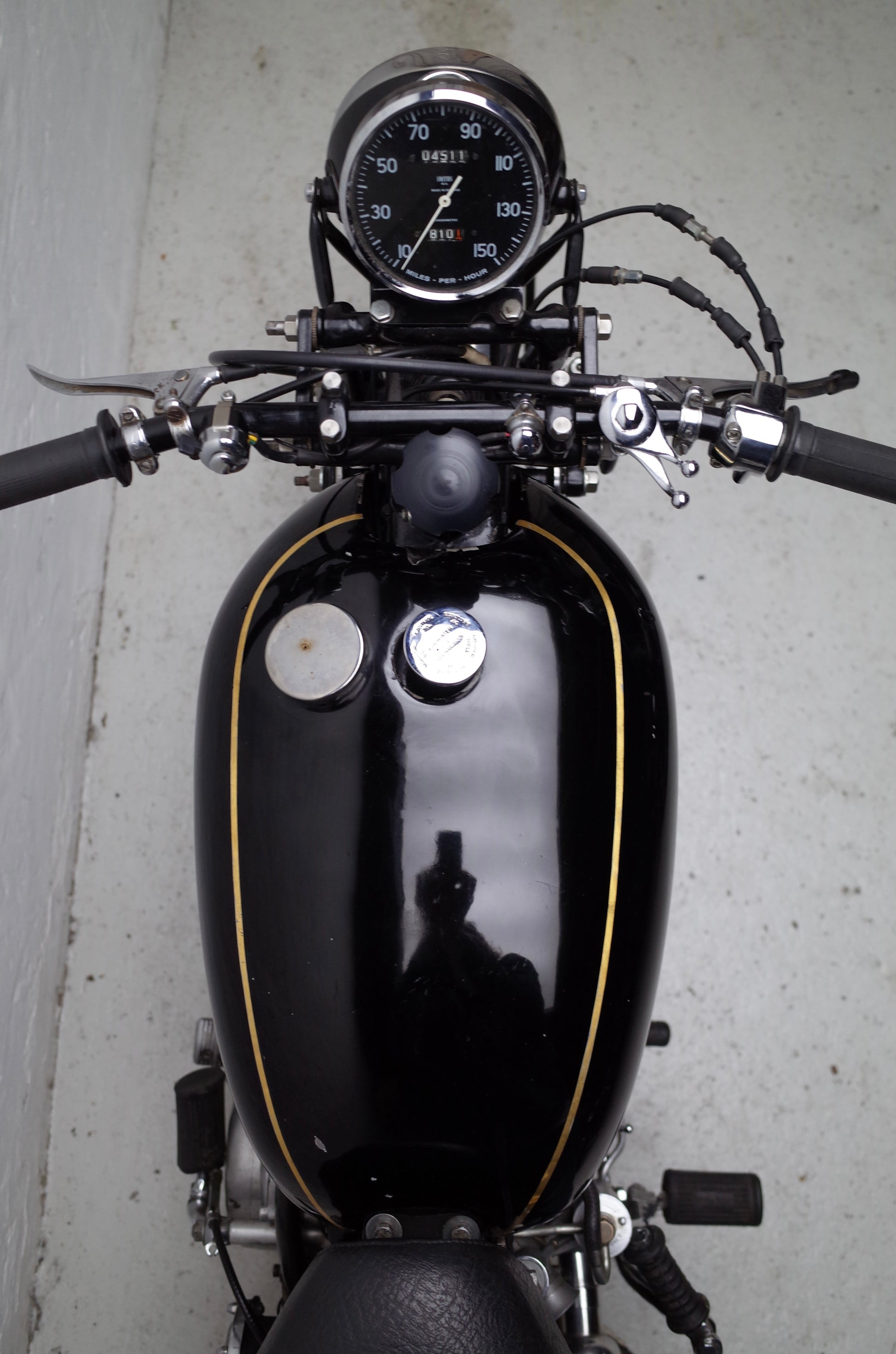 There is a lovely 5inch Smiths Black Shadow Speedo fitted and ribbed Black Shadow brake drums at the front. Subtle upgrades include a modern self generating BTH magneto for ease of starting and the original Miller dynamo being converted to 12V. The original Miller rear light is present as is the original 19inch Dunlop rear rim. The original toolbox is also present however not fitted on the photos.