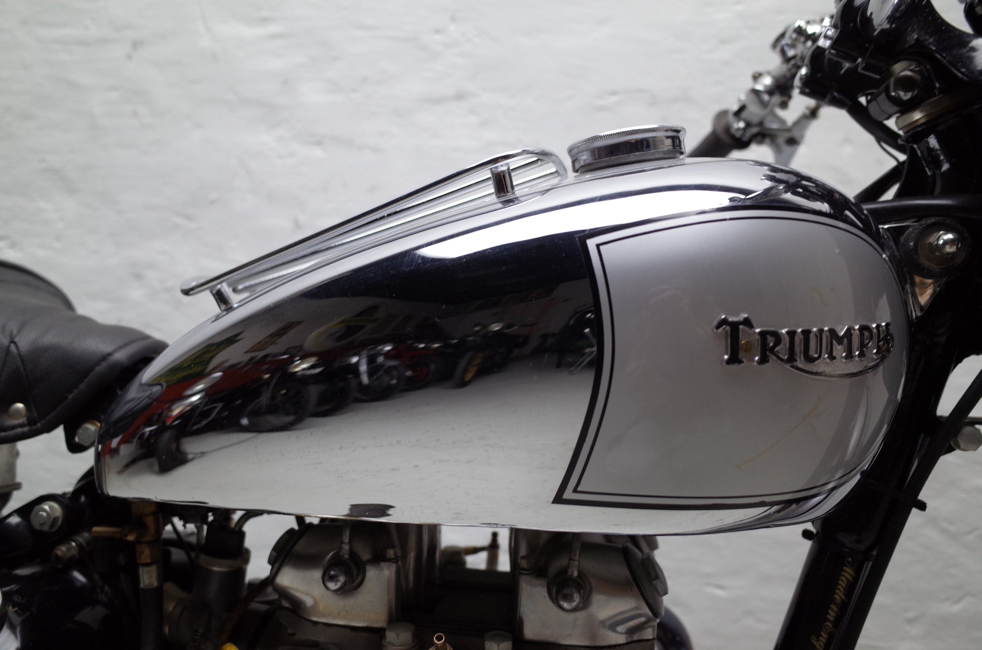 The iconic Trophy model made famous by the likes of Steve McQueen and many an amateur racer in the 1950s. Together with the BSA Gold Star, this was the bike to go to if you wanted to race competitively off road. Ride to the event, lights off and away you went.