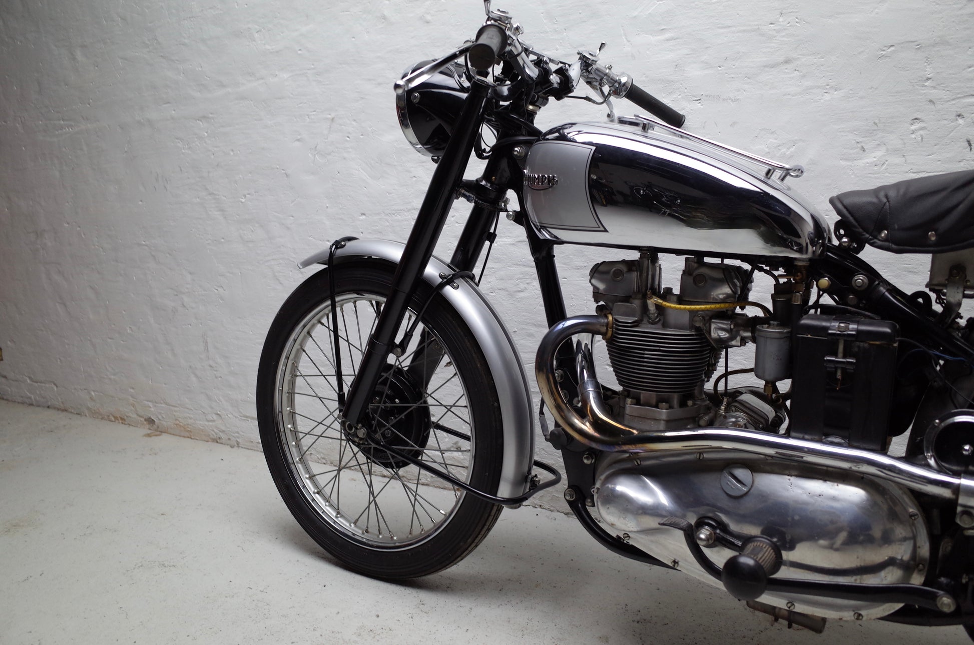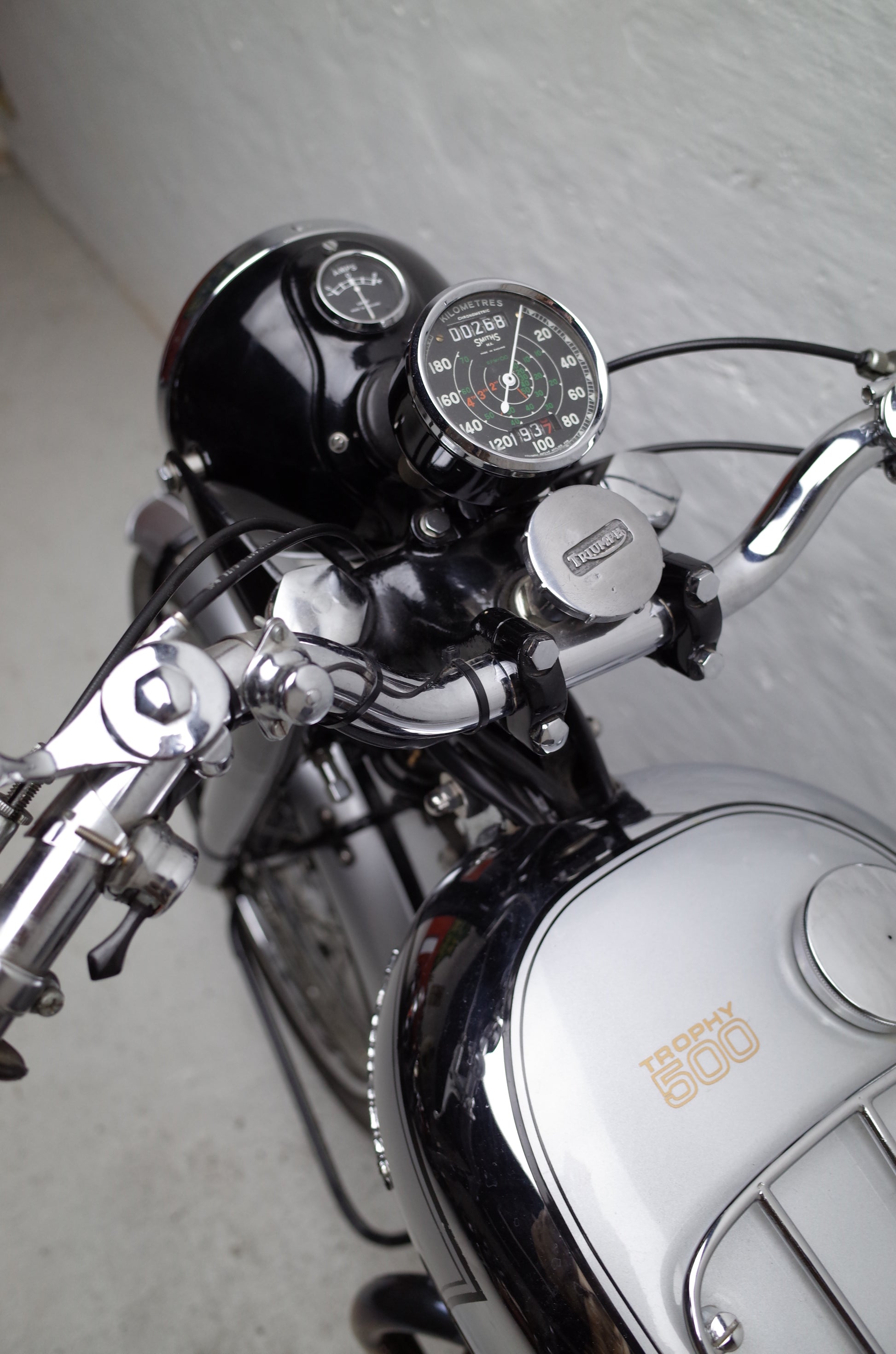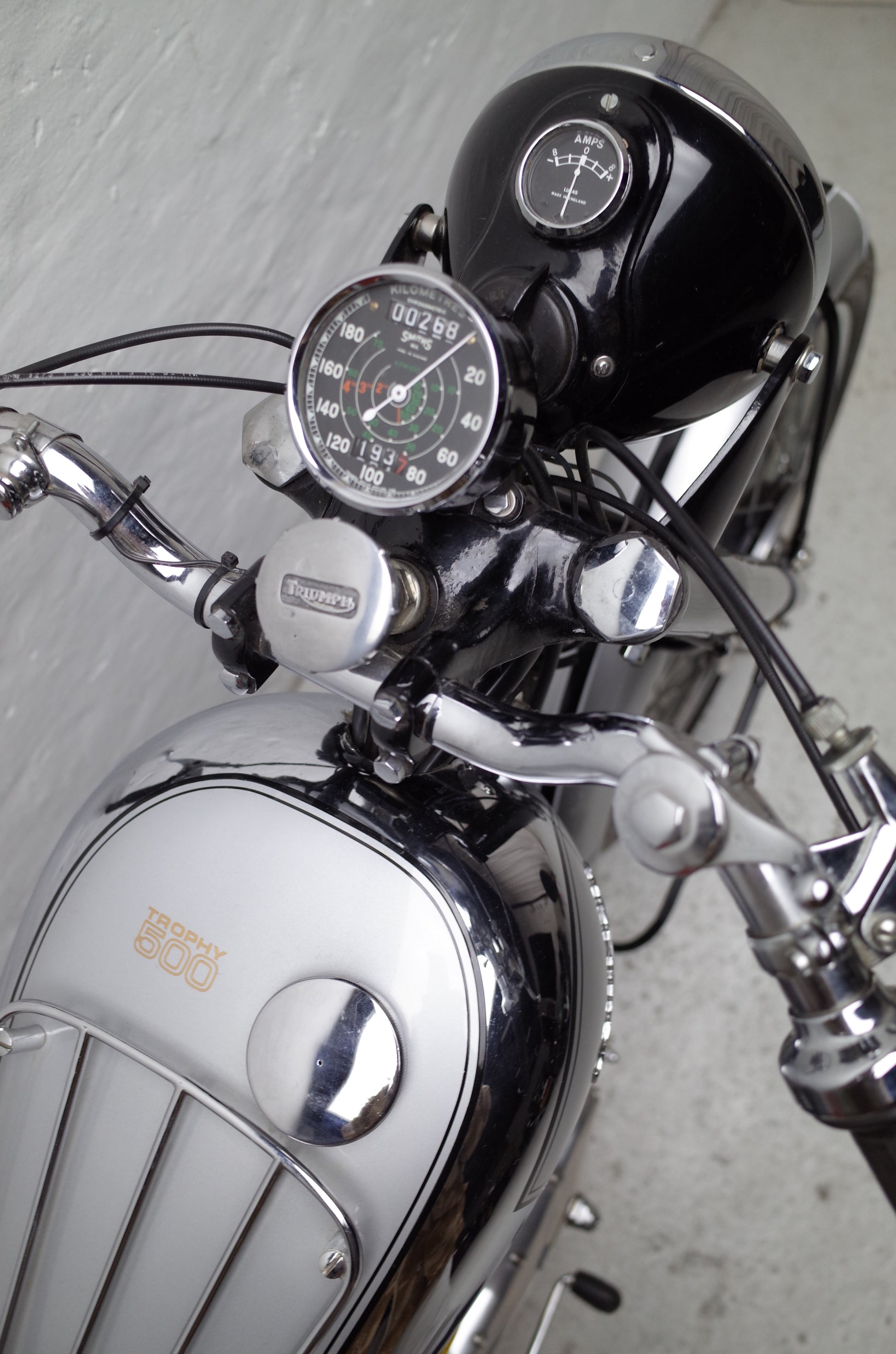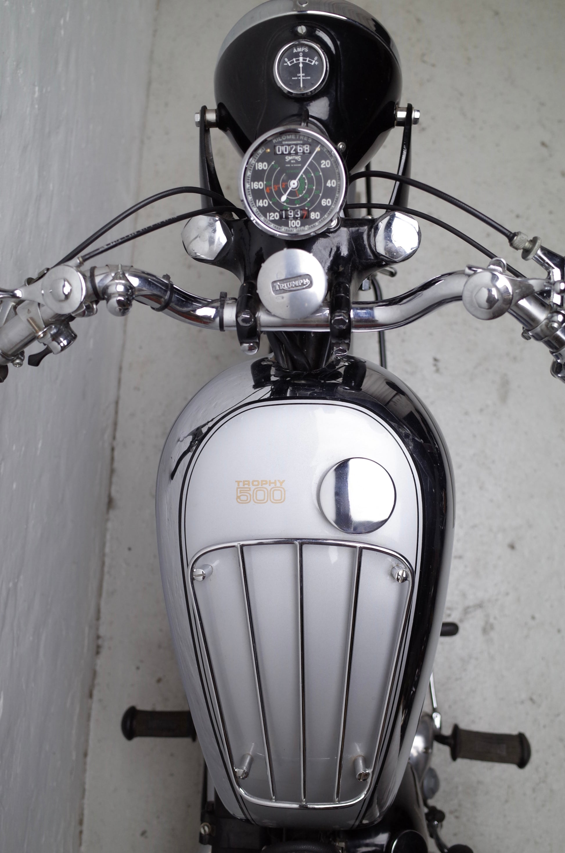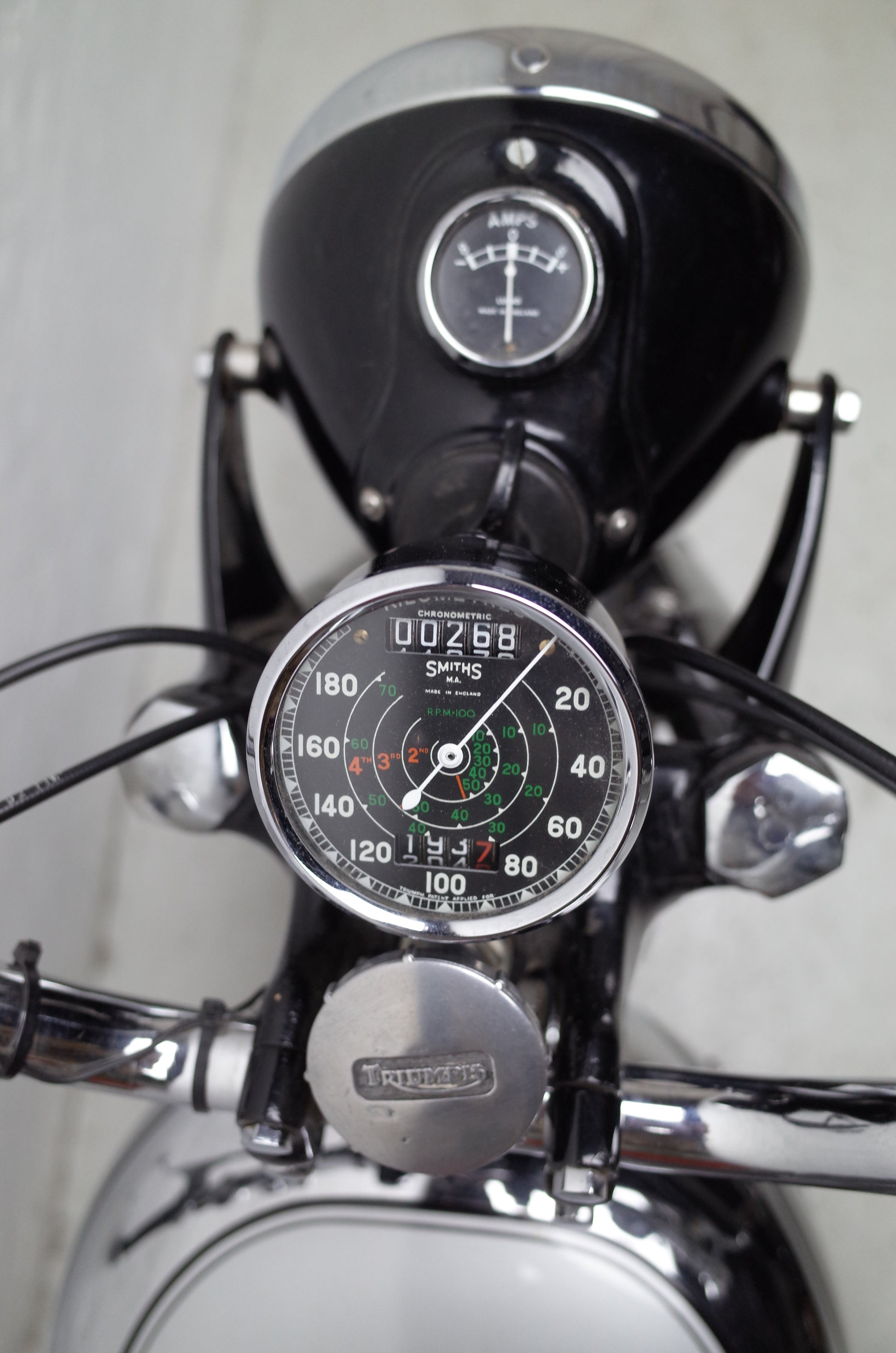 This beautiful Trophy dates from 1953, the last year of the rigid frame. It has matching numbers and was fully restored a number of years ago. With just 268kms on the speedo, it remains in near mint condition. Correct throughout, the Trophy still has all the unique parts that differentiated it from the Tiger 100: smaller petrol tank, shorter wheelbase etc.