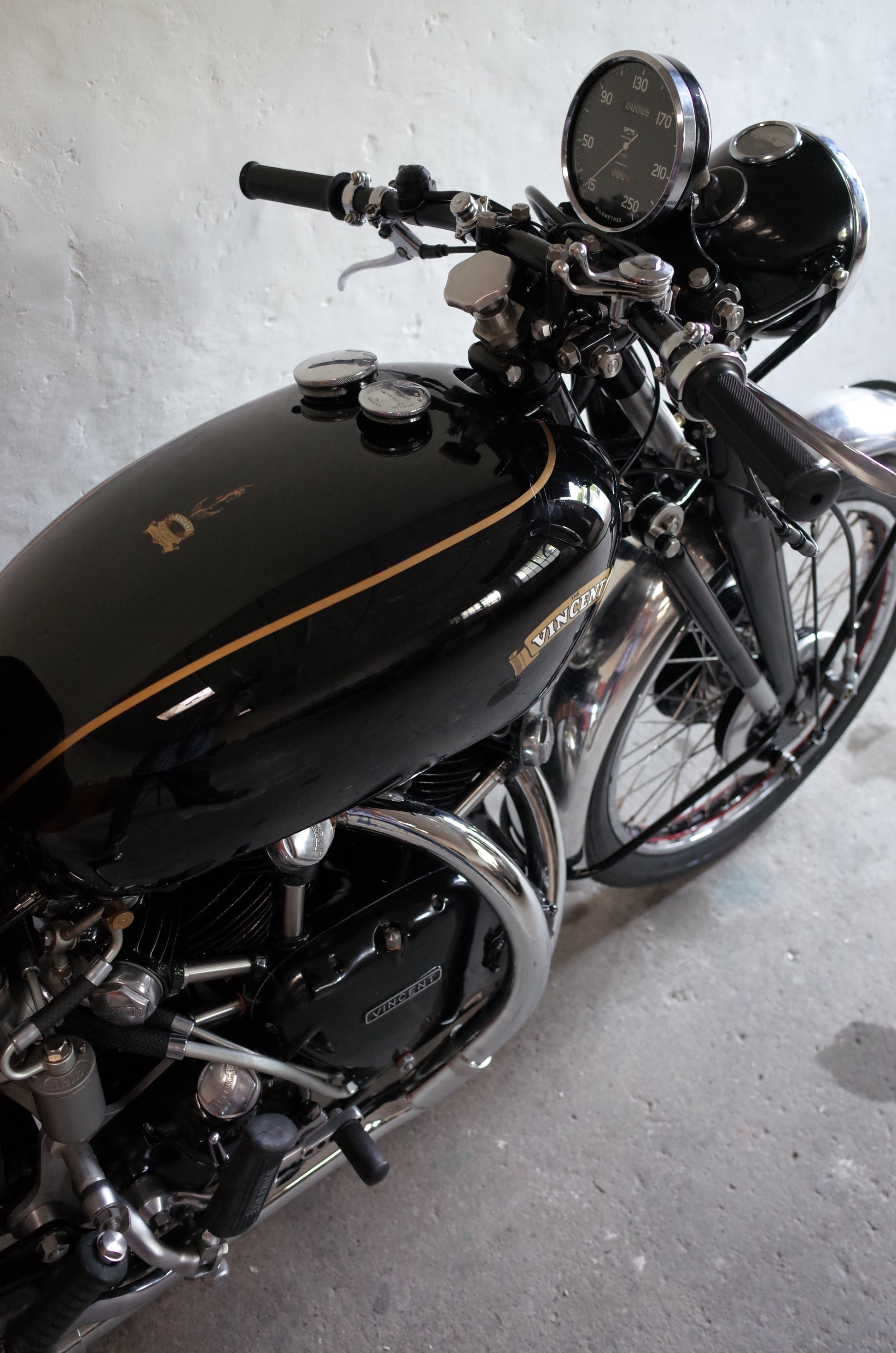 Beautiful 1954 Vincent Series C Black Shadow. Just finished from a no expense spared, nut and bolt restoration to mint condition.