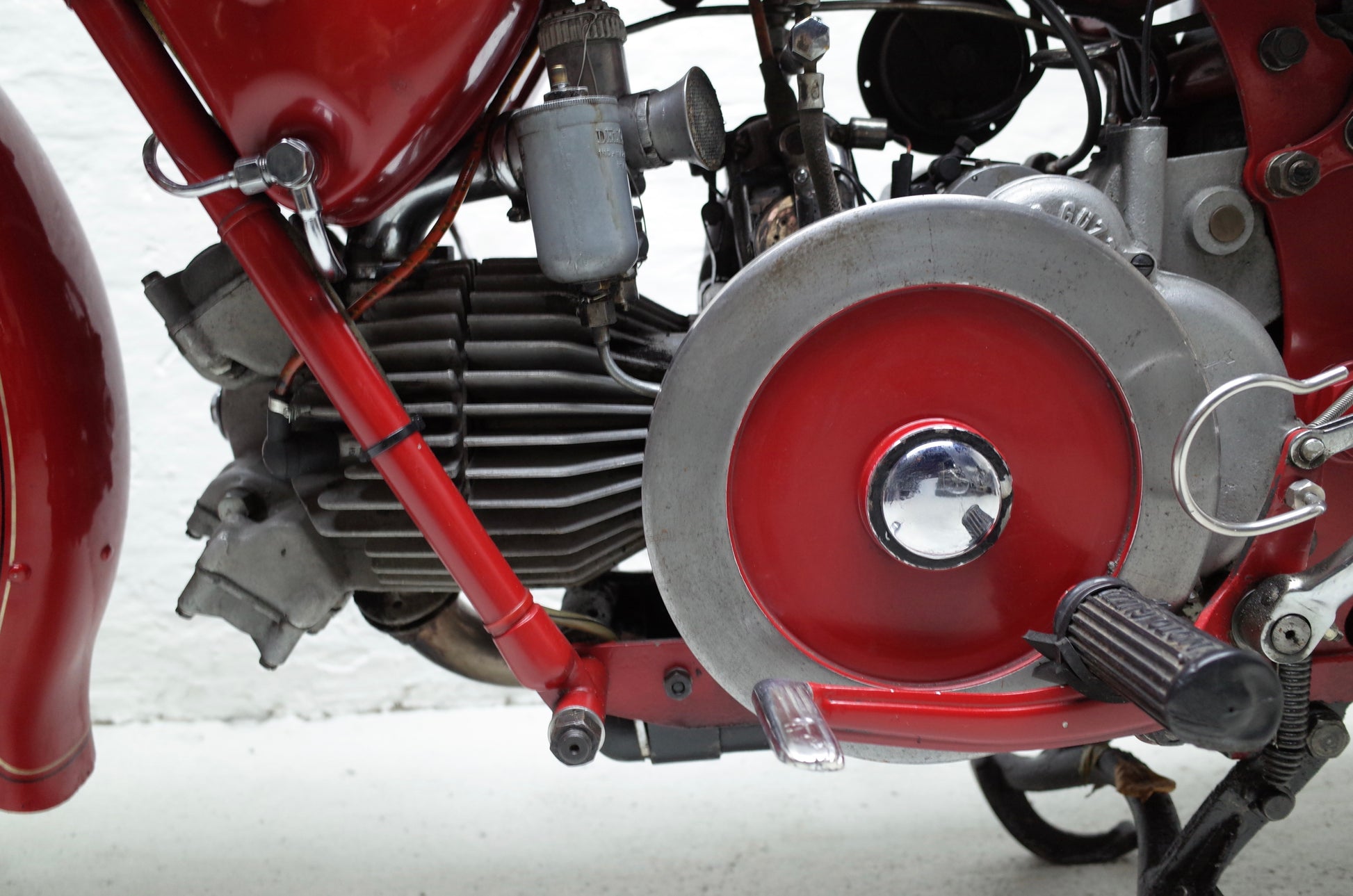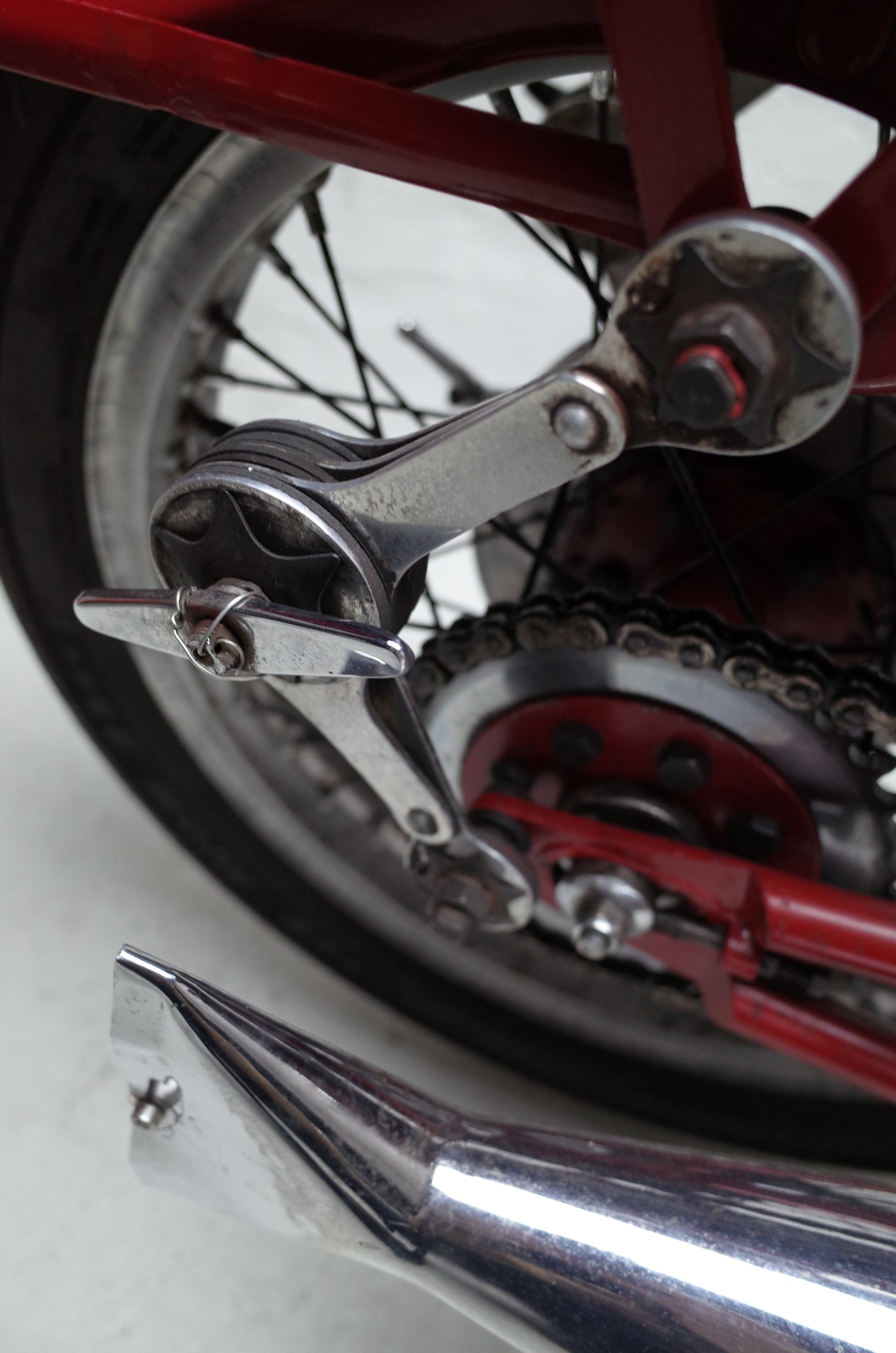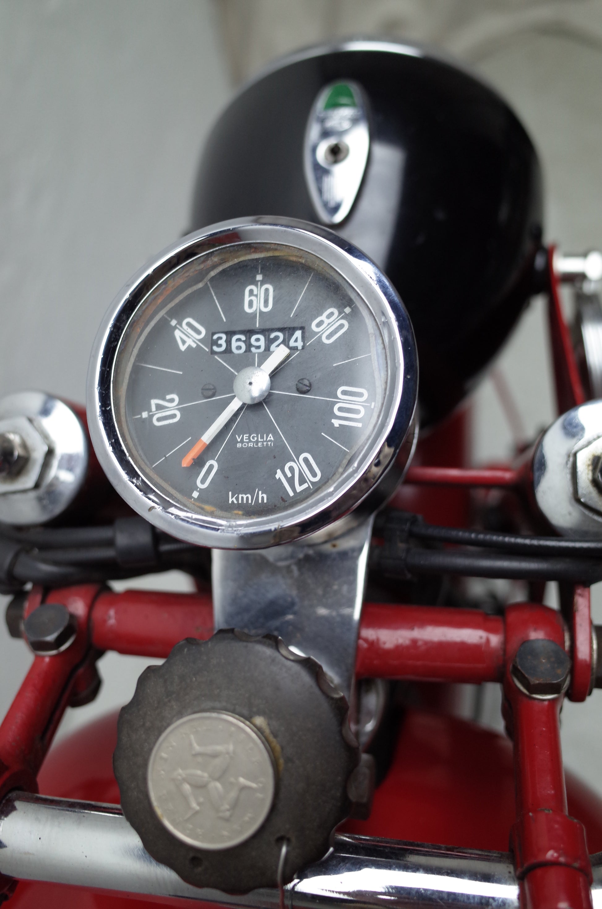 The Falcone Sport presents lovely and is a beauty to behold with its intricate Italian engineering details and striking deep red colour. Correct Veglia speedo fitted. Racing type Dell’Orto carburettor with separate float chamber fitted.