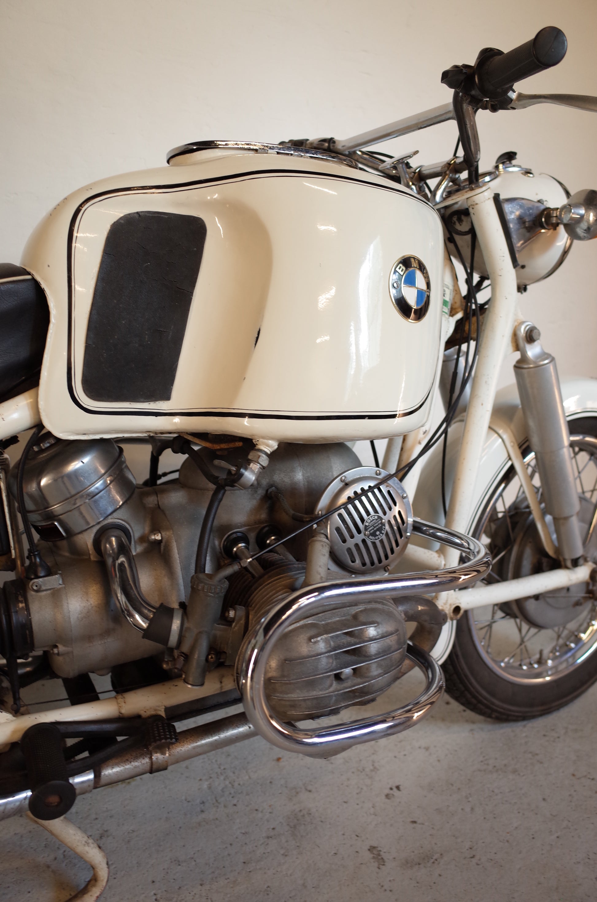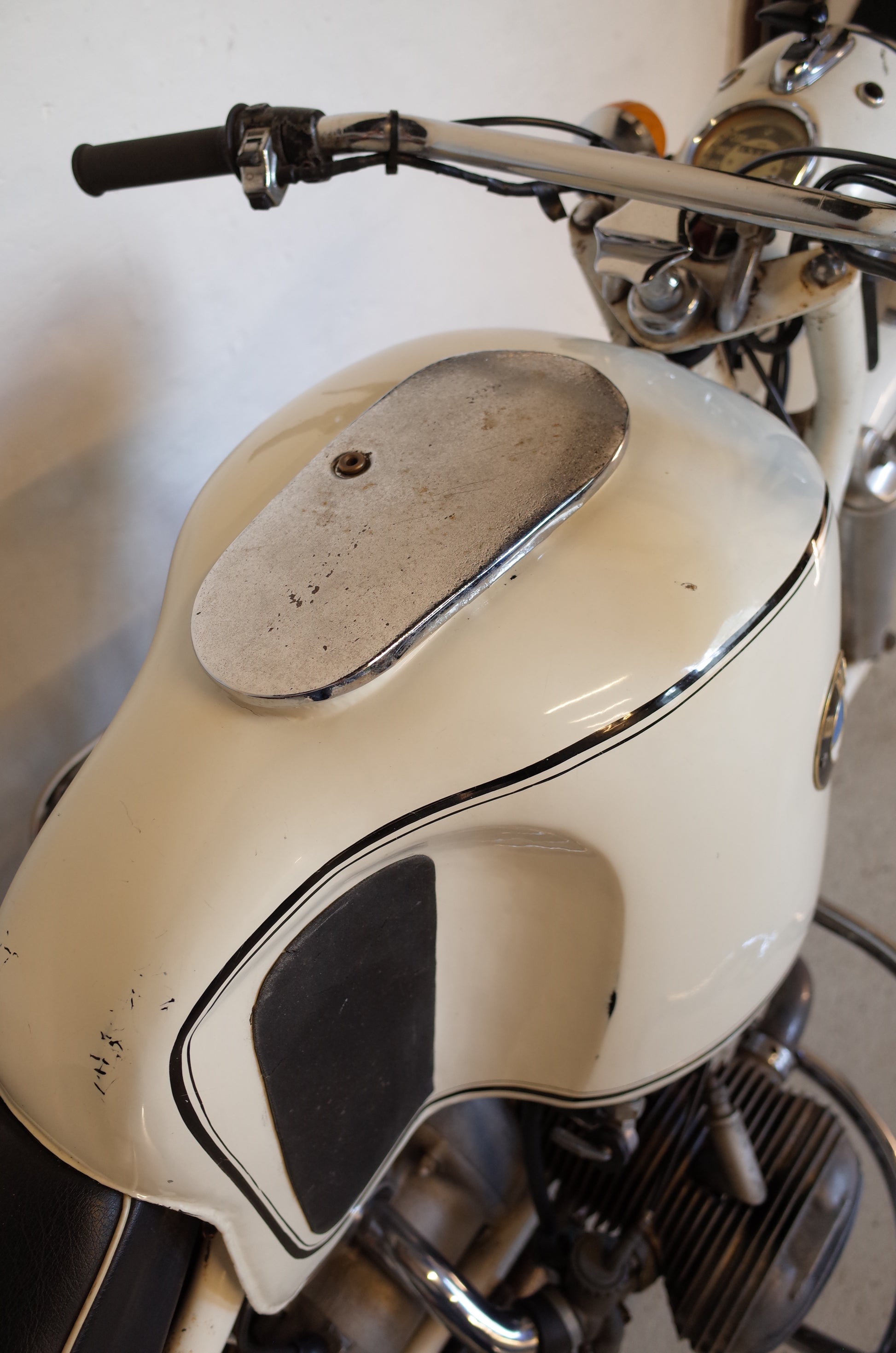 This is an ex. Police BMW R60/2 from 1965. Still in its original, first paint and chrome. The BMW has a lovely patina. It is not a mint condition trailer queen but is guaranteed to turn more heads with its lovely original and unmolested appearance.