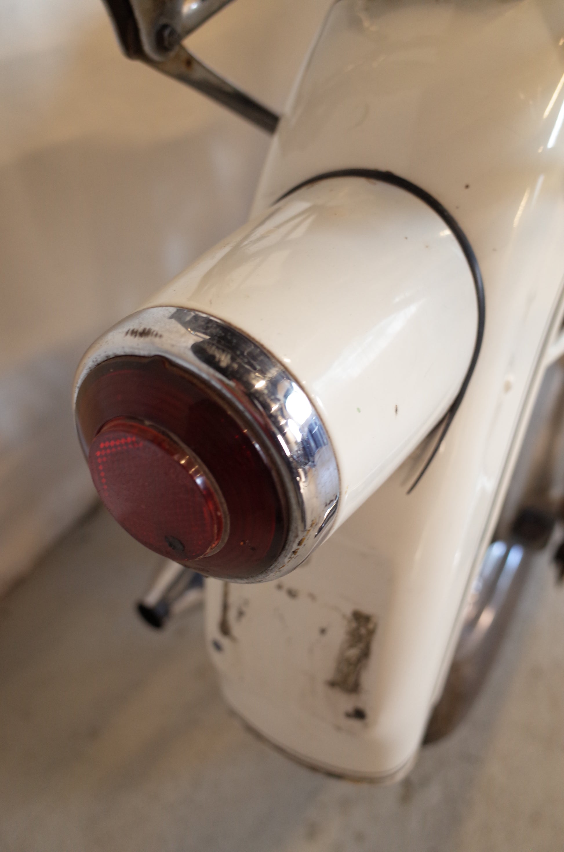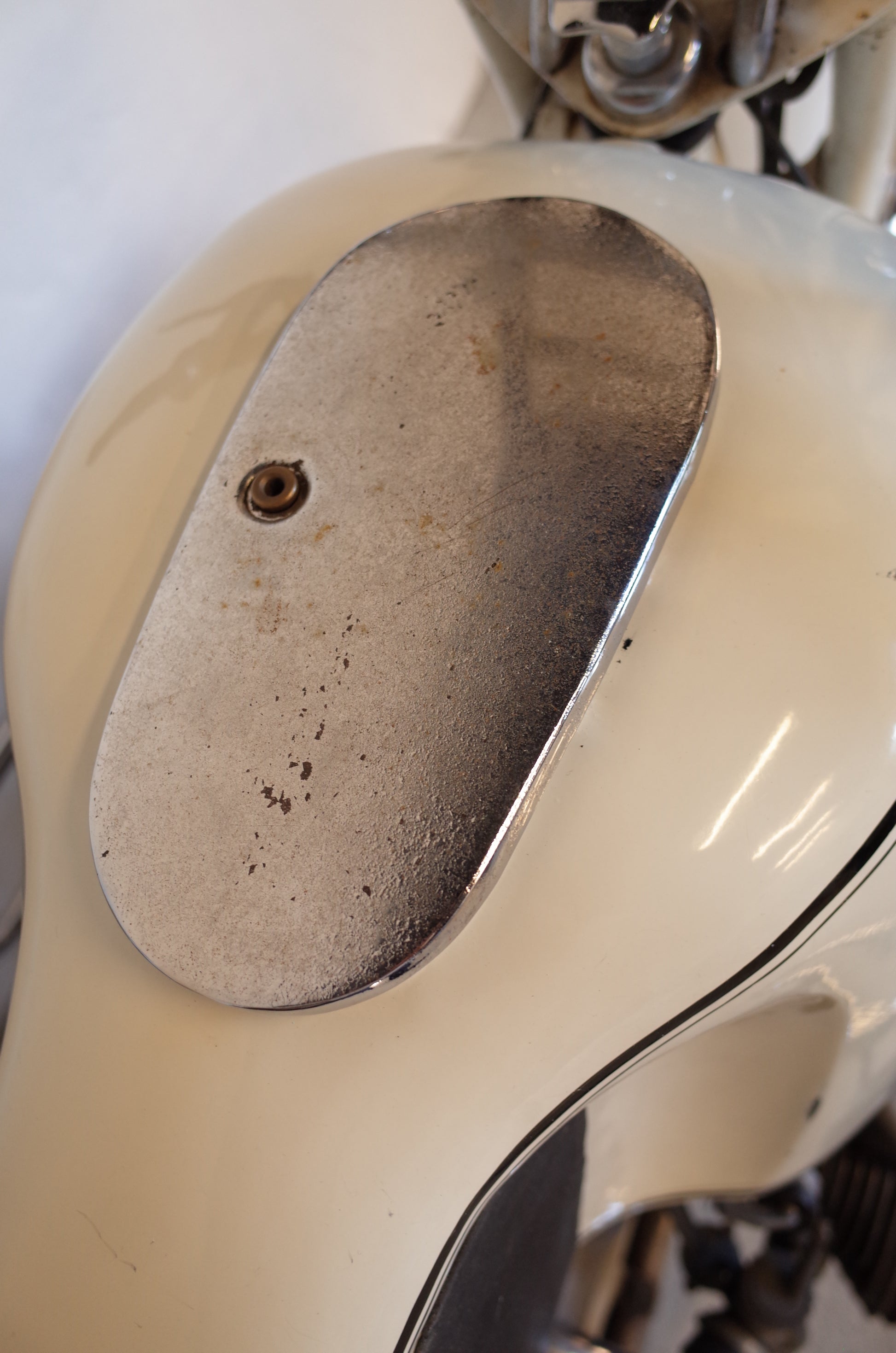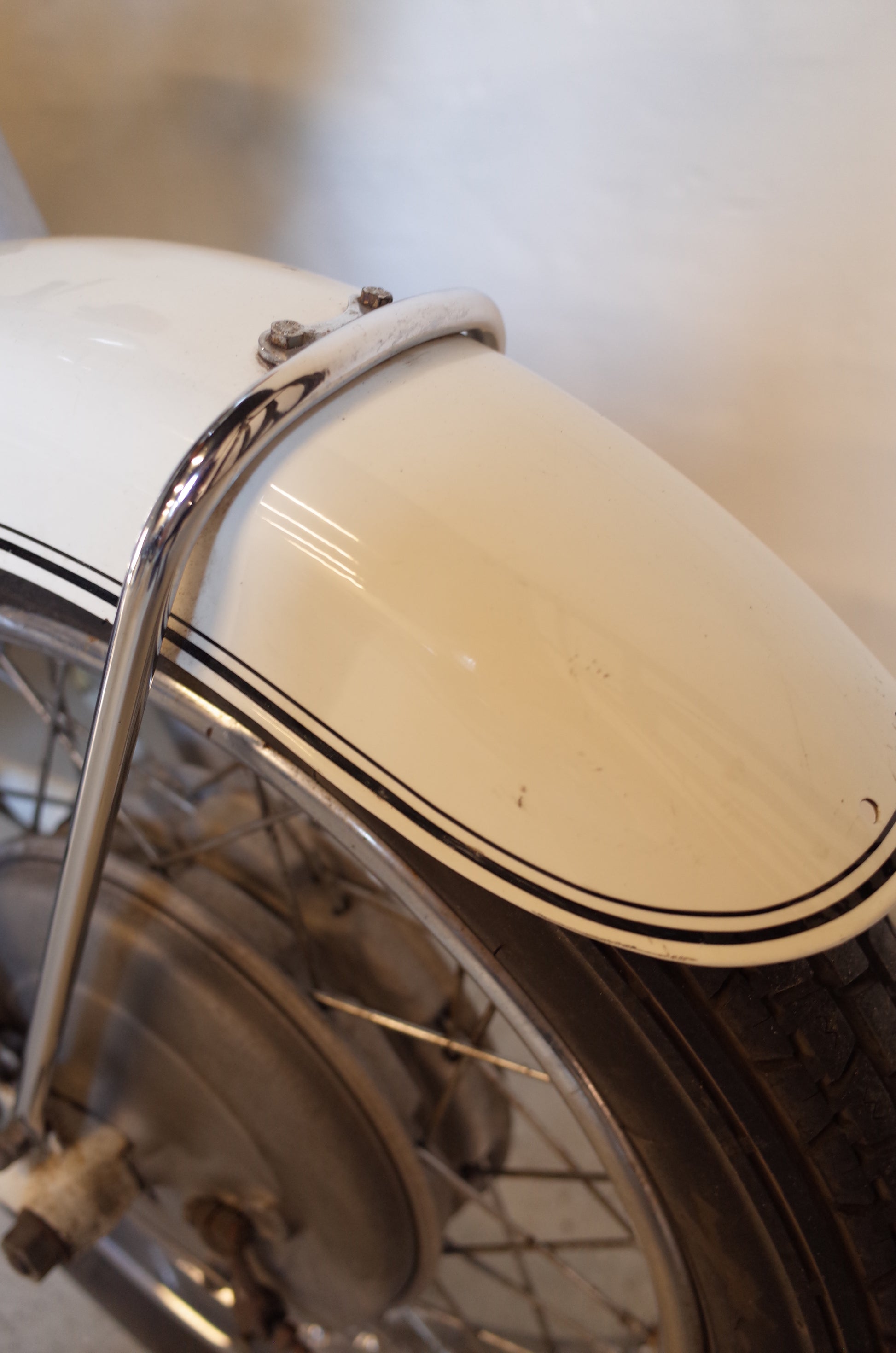 The paint has some light surface rust in places that can be rubbed down with a bit of oil and very fine steel wool. A polish to finish off, would leave the paint in impeccable original condition. There is one spot of rust on the rear mudguard, just between the seat and the rear hinge. It would be nice to sand down and paint this area. A good painter is able to colour match and blend in, so it can be done as a local repair.
