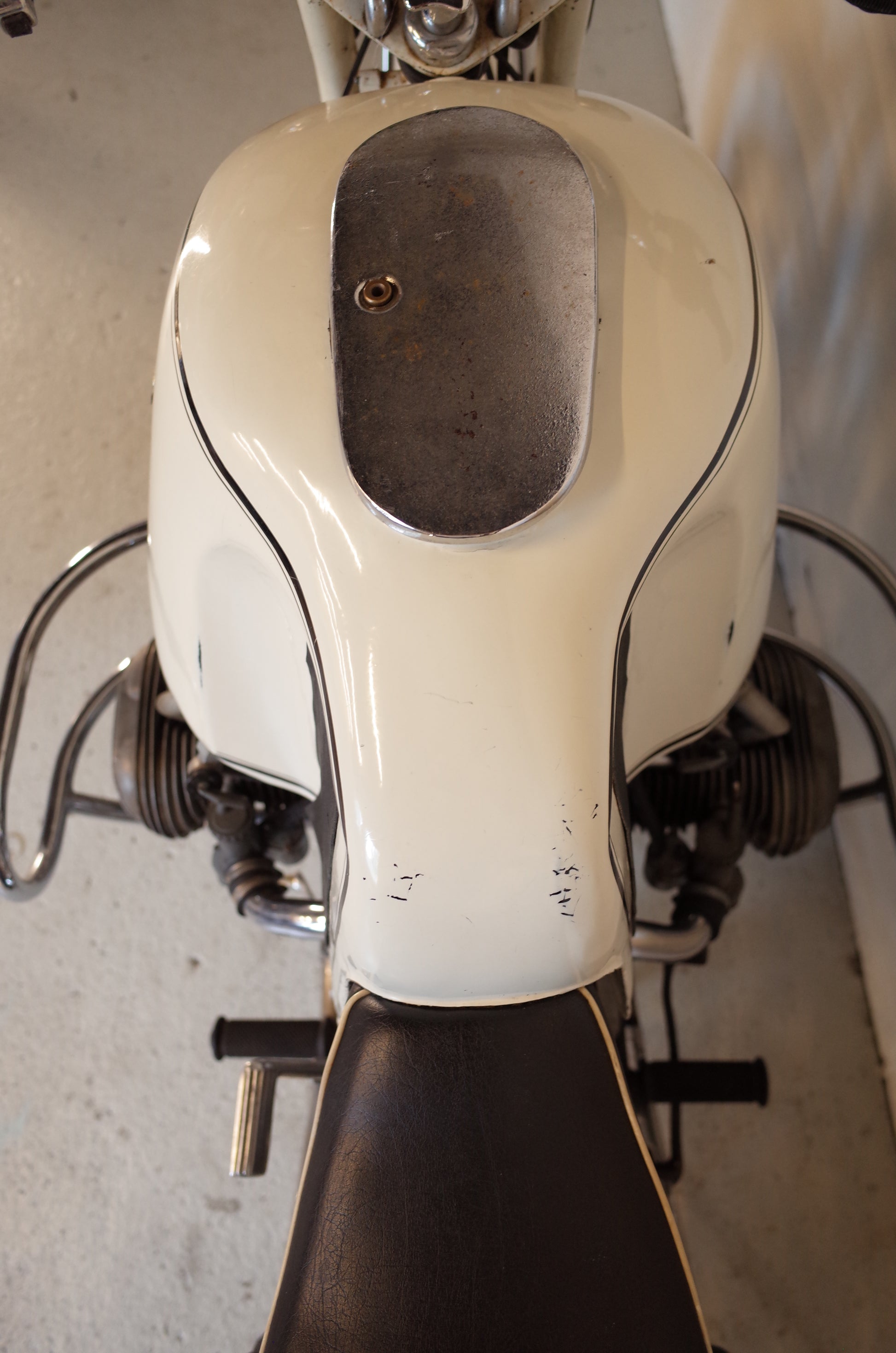 The special, extra-large capacity petrol tank is believed to have been hand crafted by Karl Heinrich, one of two artisans in Germany producing large capacity aftermarket tanks for BMWs in the 1960s and 1970s. The other being the more known Ernst Hoske. I doubt you will find a petrol tank with a bigger capacity. It has a capacity somewhere between 35-40 liters.