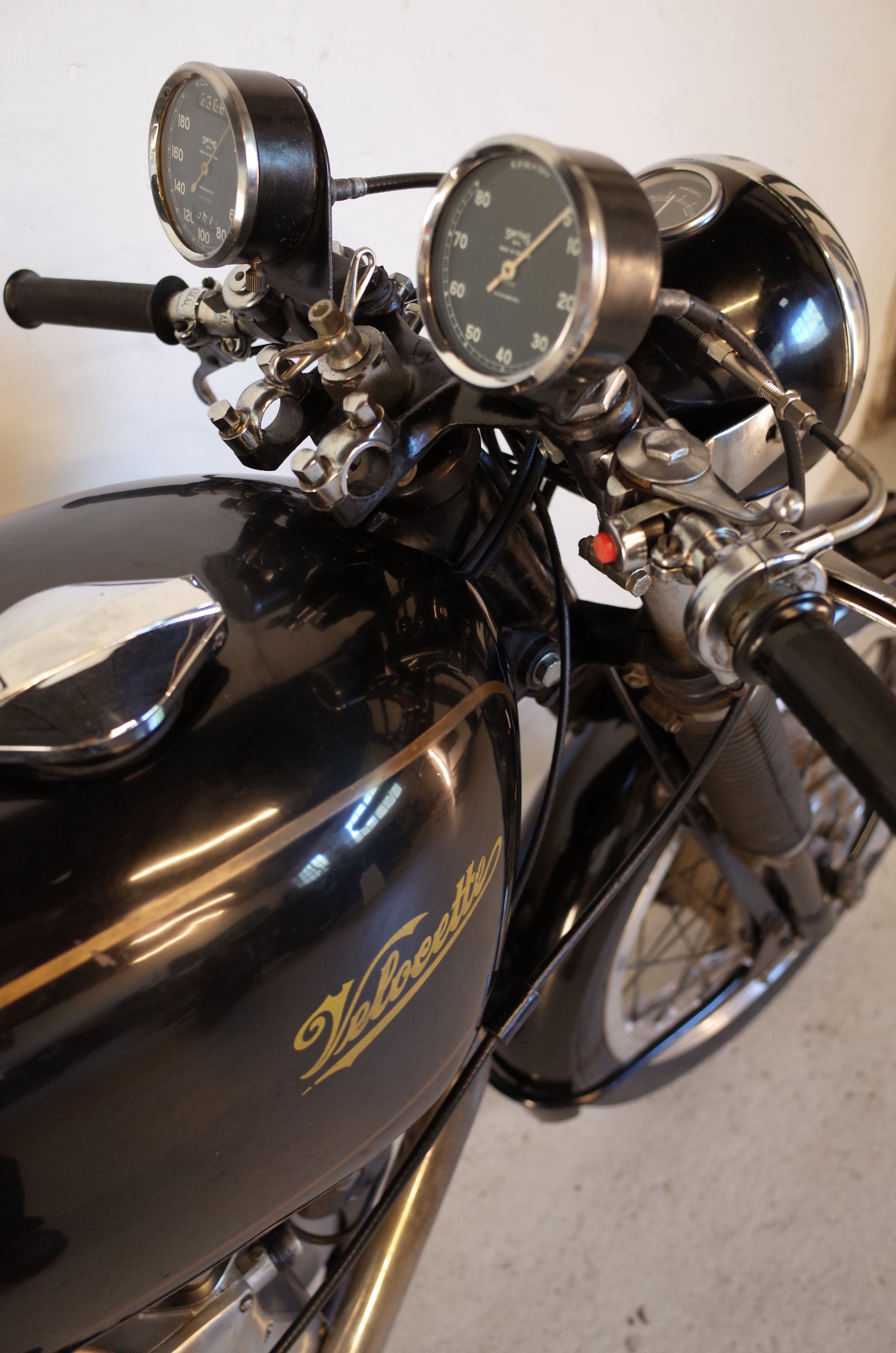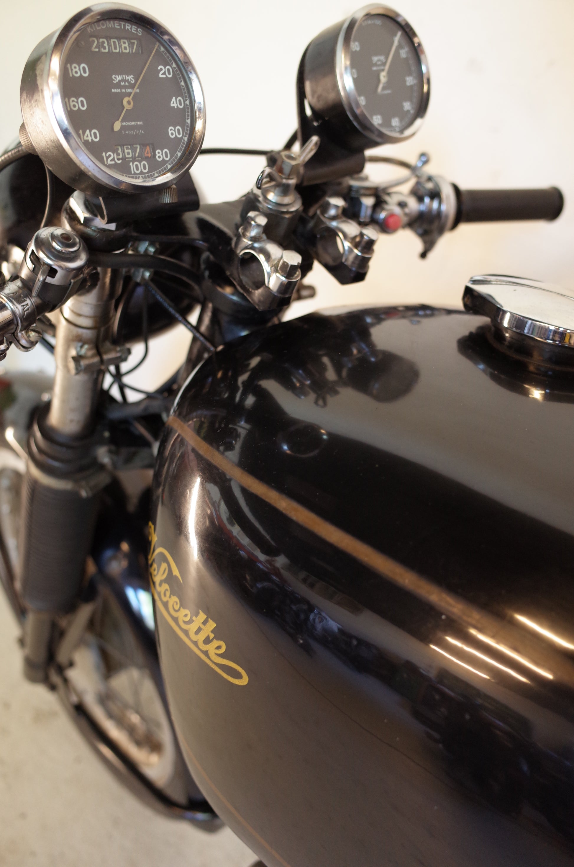 Earlier Smiths clocks fitted in period as they looked better. Exact mileage is not known but the bike is very well kept mechanically and has been used regularly in the summer over the years.