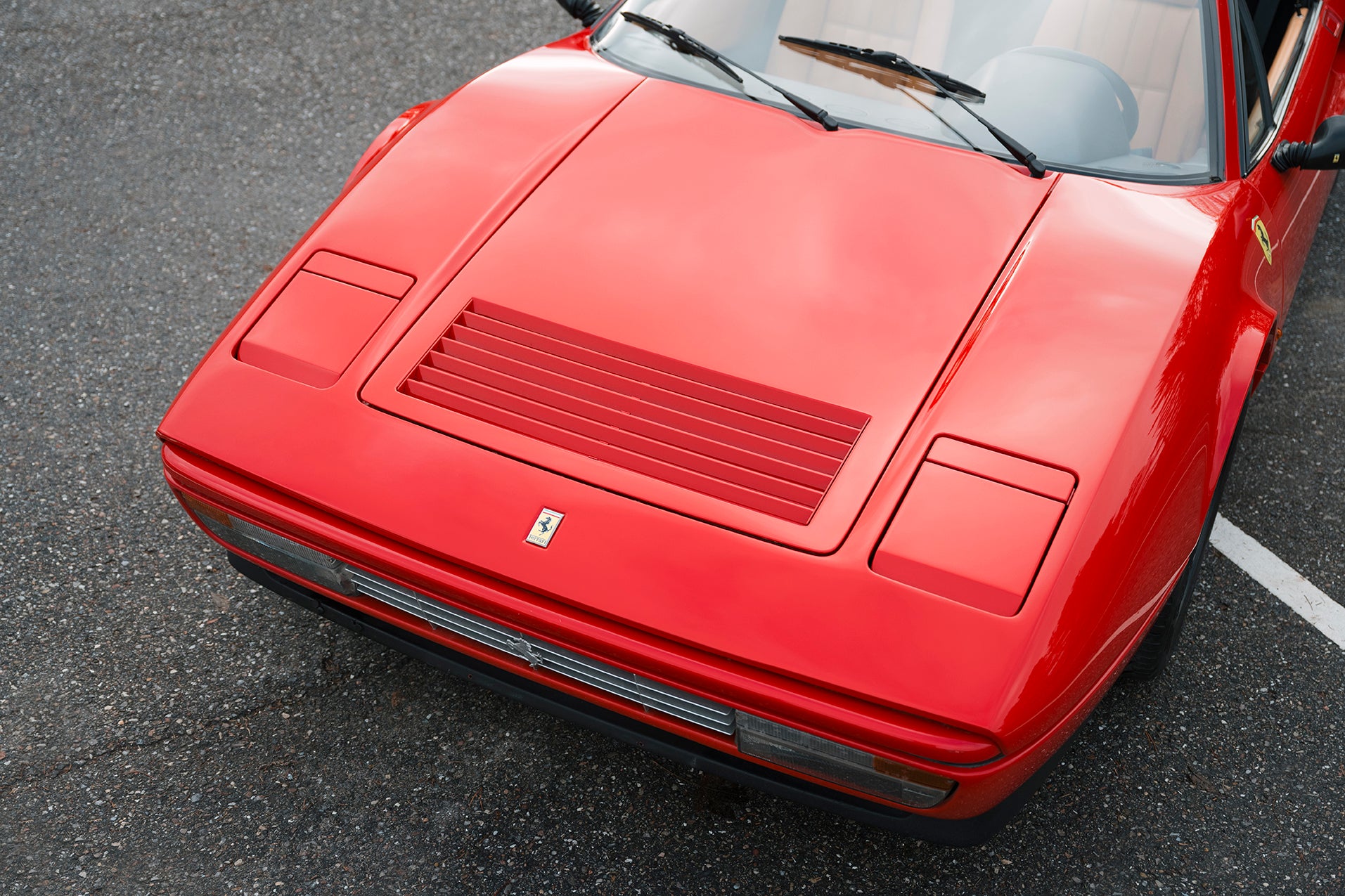 According to its chassis number, it is the 60th last produced of the 328 GTS, so a very late production model. Finished in its original colour of Rosso Corsa over beige leather, a classic Ferrari specification that perfectly complements the car’s clean lines and elegant interior.