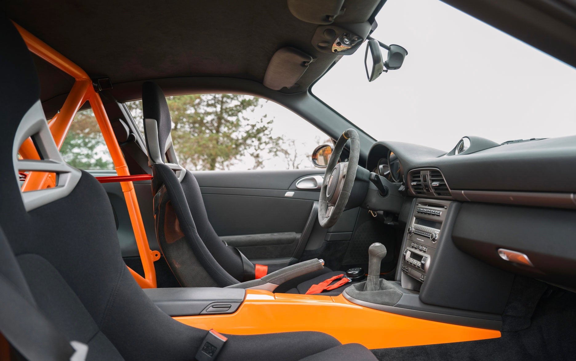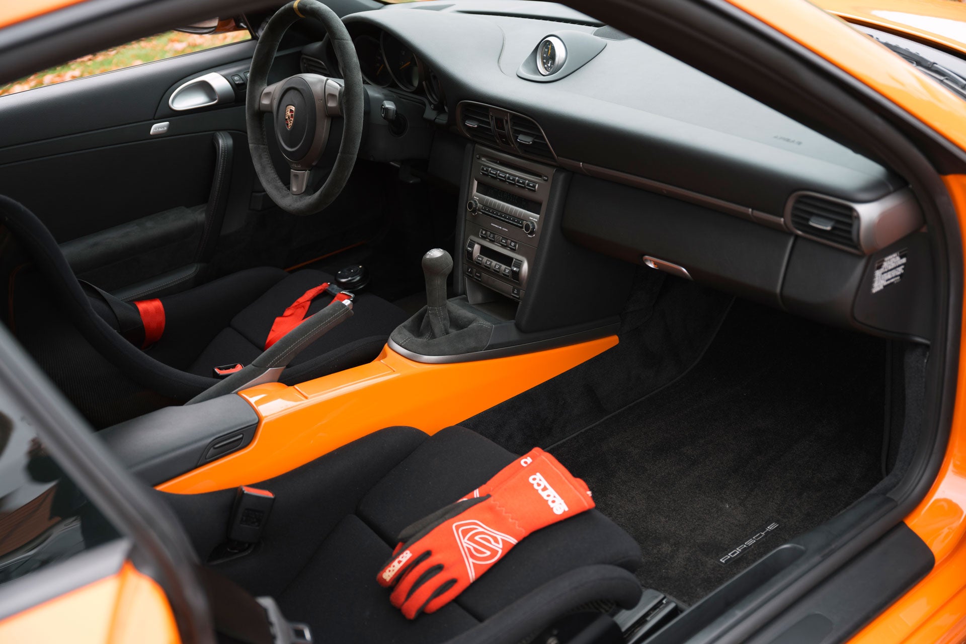 The GT3 RS is still in its original orange over black alcantara/leatherette interior, the original paint and interior is in pristine condition, the paint being protected by a clear, protective film on the front hood, wings and front spoiler. Optional extras from the factory include Sports Chrono Package, racing safety equipment including roll-cage and Carrera GT bucket seats, Ceramic Brakes and Bi-Xenon Lighting System.