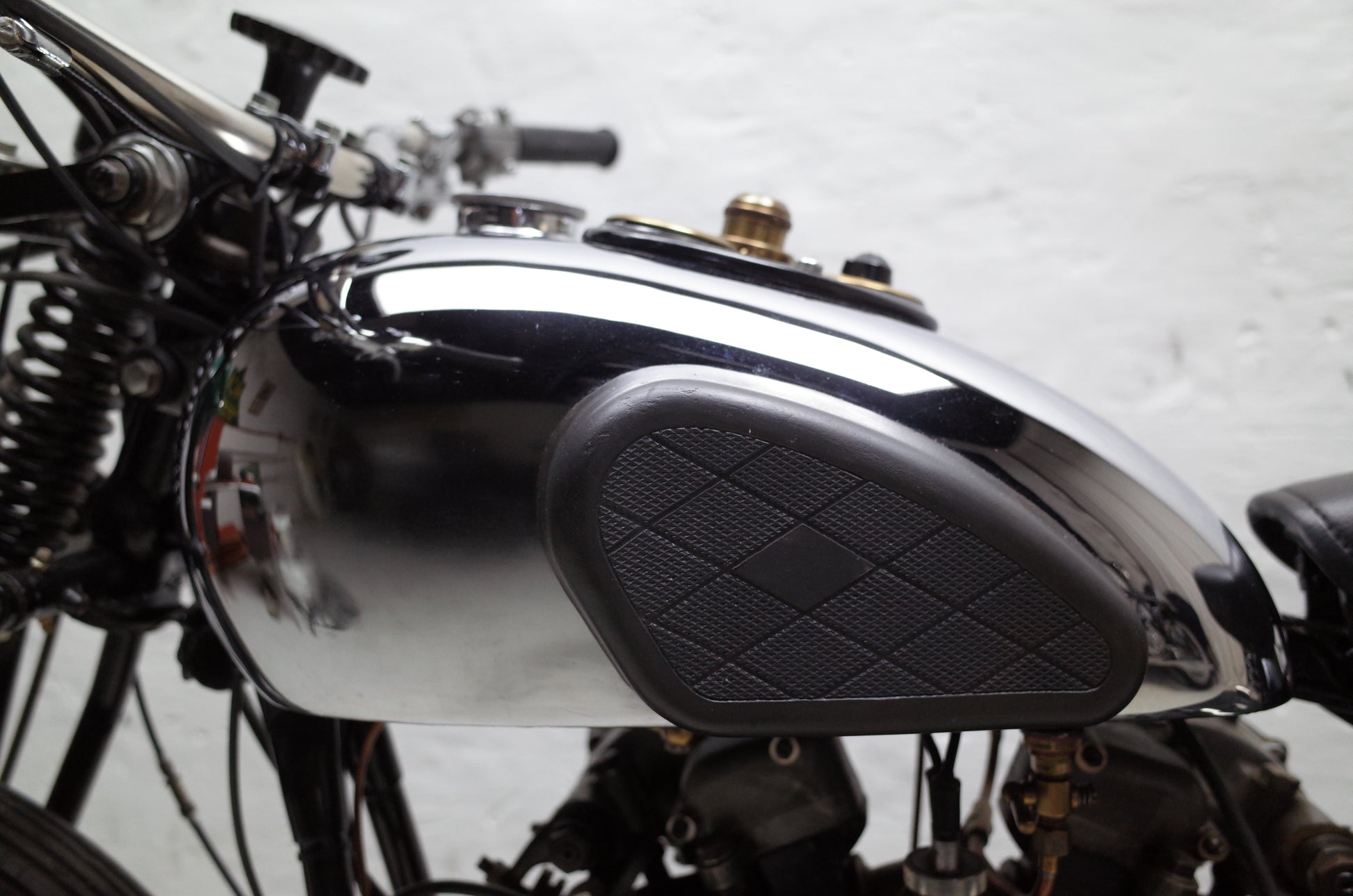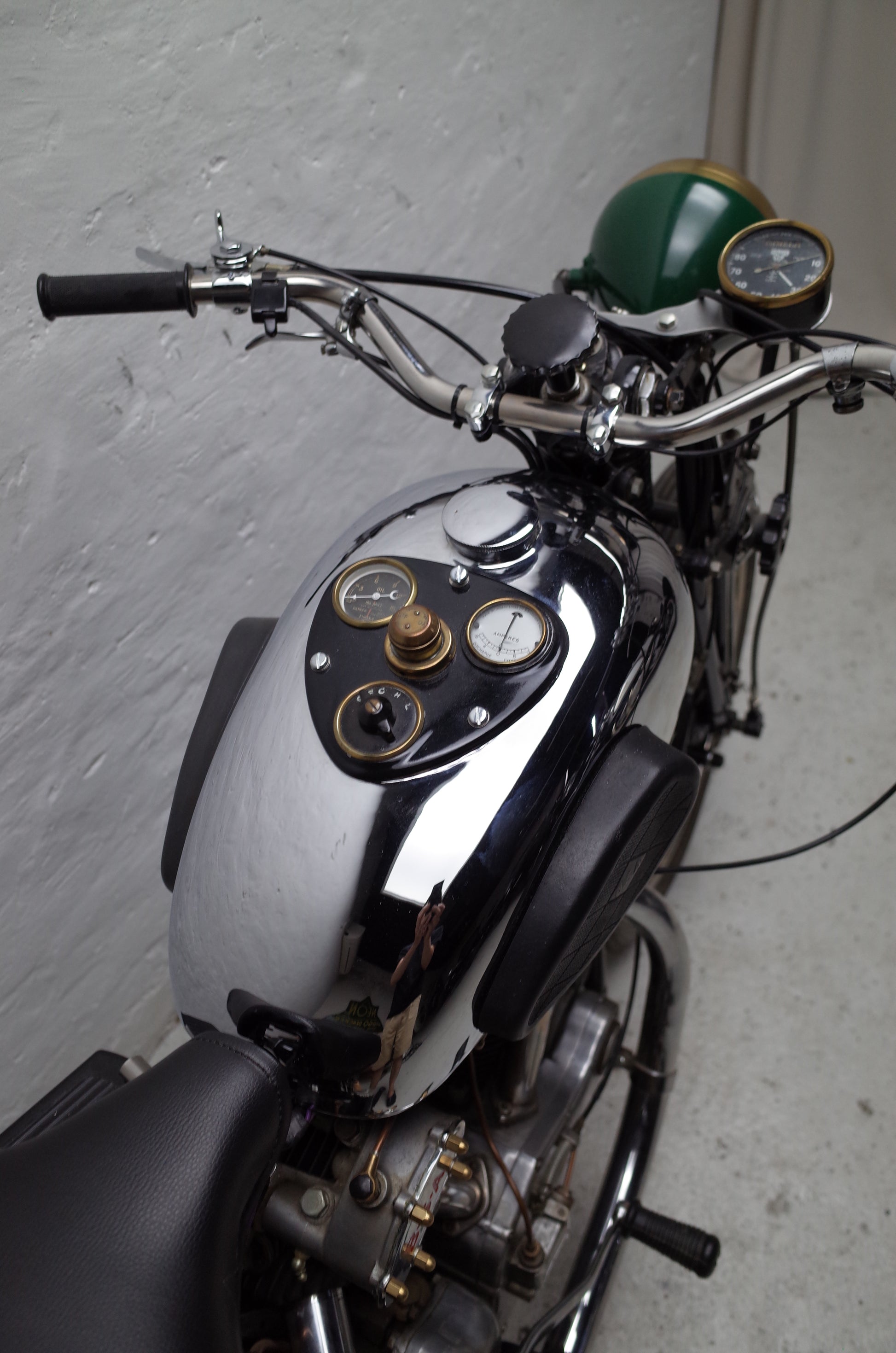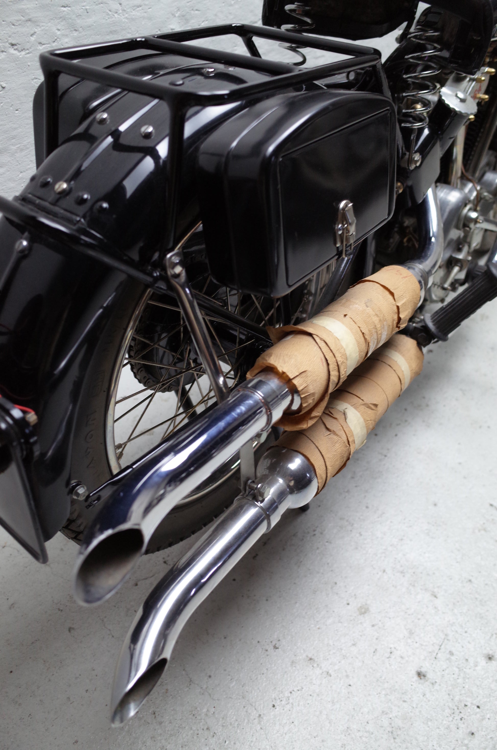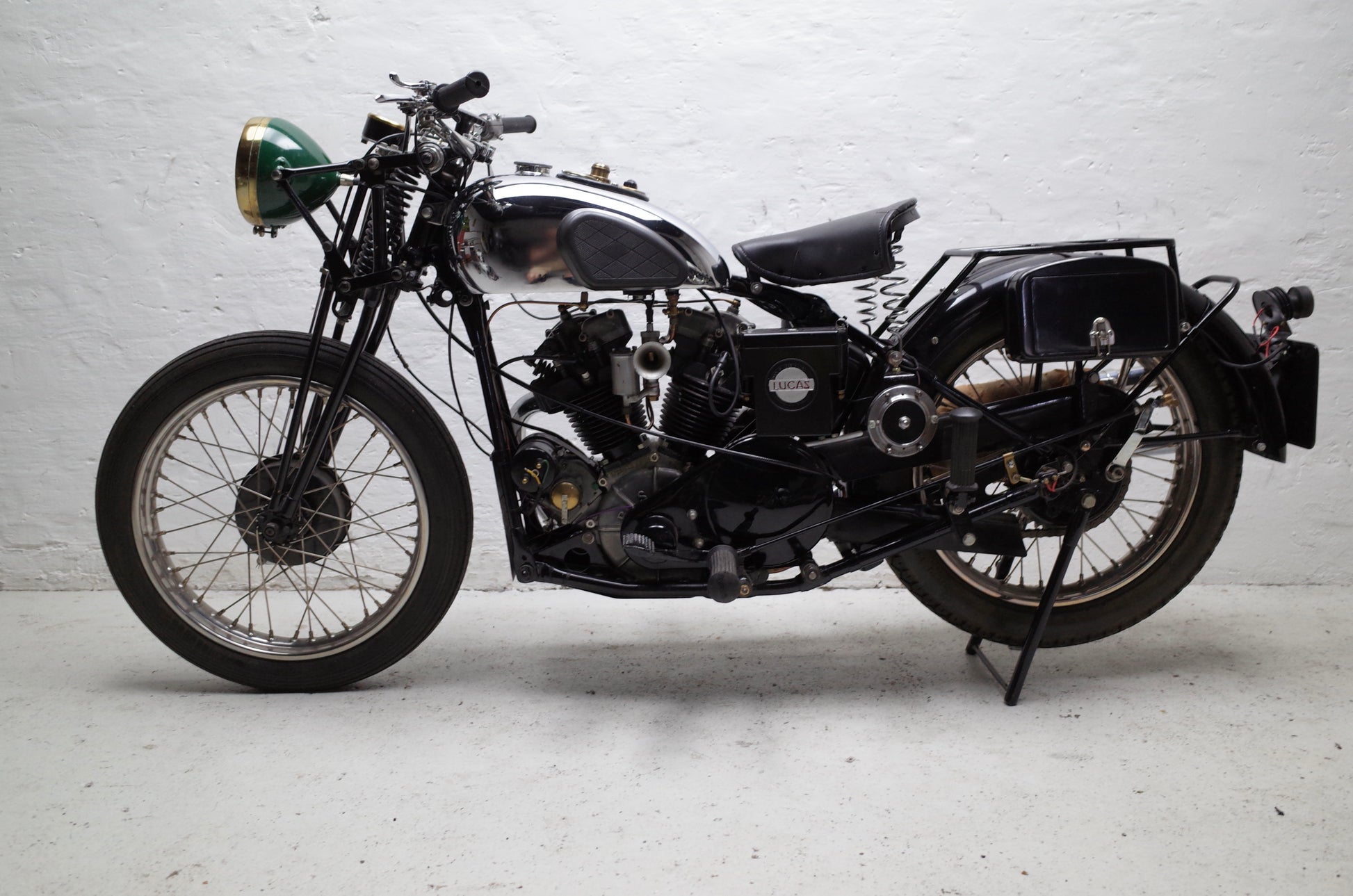 Rare 500cc V-Twin. Matching numbers. Civilian model. Nearly finished restoration to high level. Complete but needs final fitting of mudguard, paint and transfer on the petrol tank and other small bits to finish. The original front mudguard is included, painted and ready to fit. Very correct specification and in beautiful, restored condition.